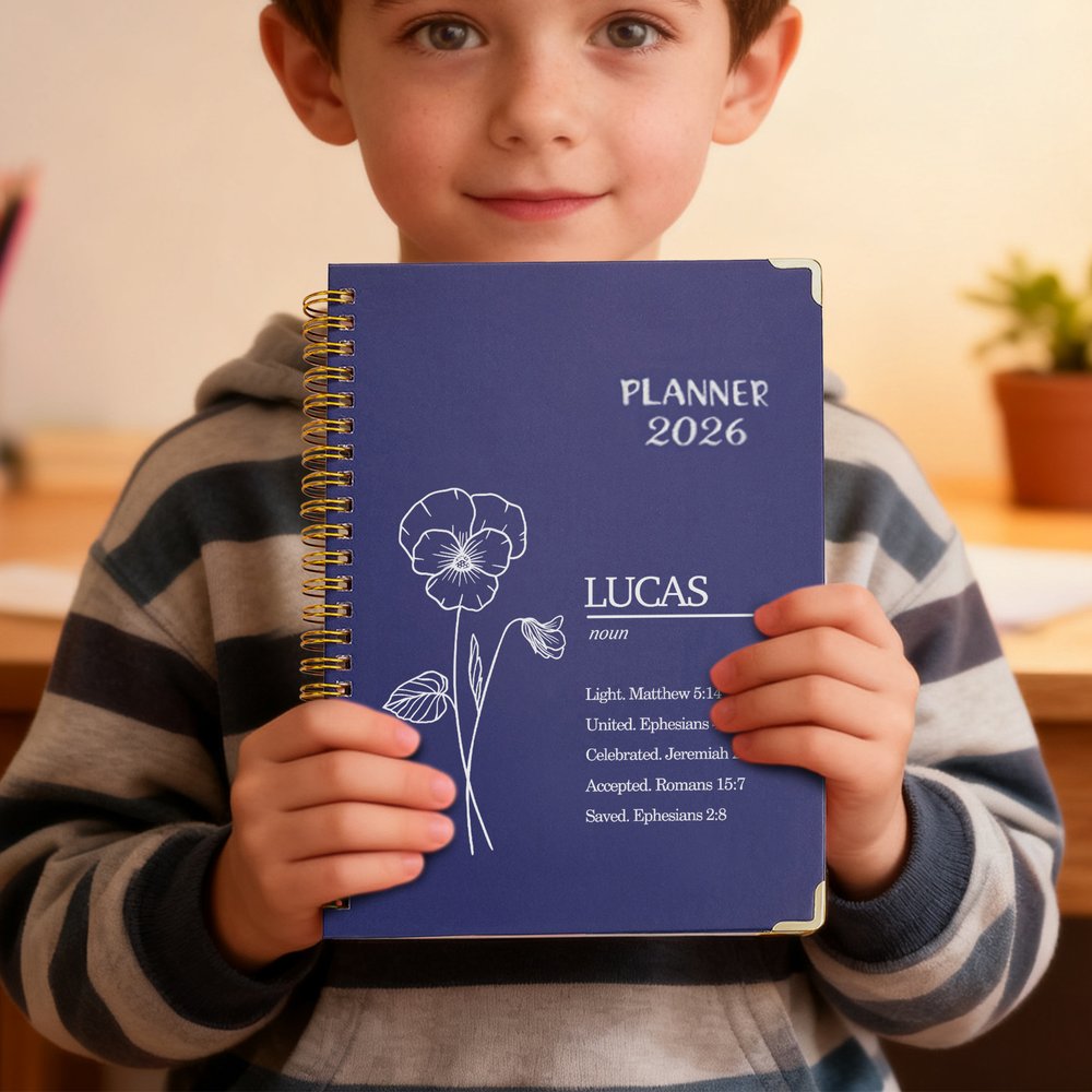 Centered around birth flowers, customizable names, and biblical texts, this planner embodies natural aesthetics, with birth flowers symbolizing love and blessings. Personalized names highlight a sense of uniqueness and cherished value, while biblical passages offer spiritual encouragement and protection—catering to Christian faith needs with dual symbolic significance: decorative appeal and emotional/spiritual resonance.