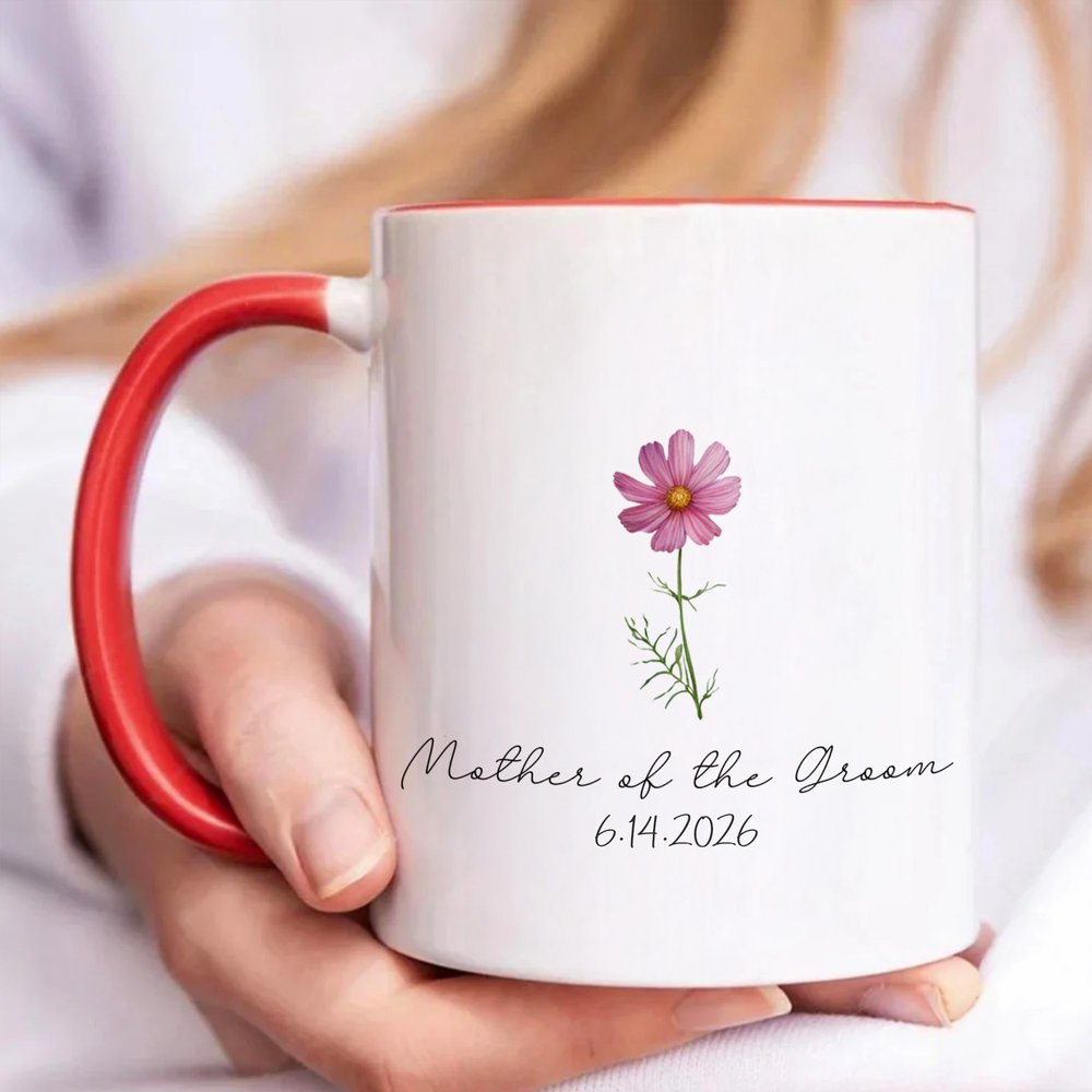 The mug features a birth flower as its core design element, incorporating a unique floral pattern into the mug body. The elegant and refined design is complemented by personalized text and date, making each mug a unique keepsake. Each birth flower carries its own unique meaning, elevating the mug beyond ordinary tableware into a beautiful and memorable piece, perfectly suiting the refined and emotional expression demanded by weddings.