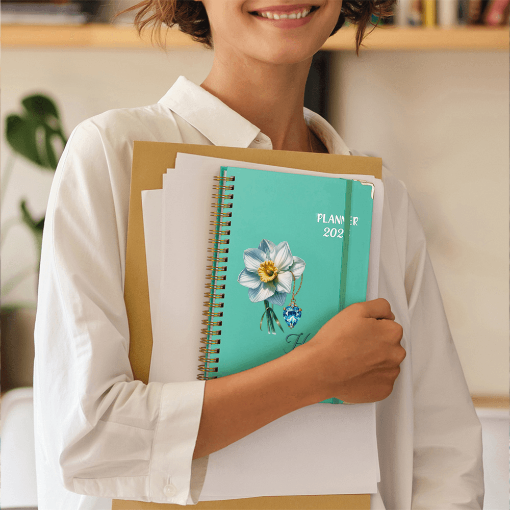 Features your chosen birth flower paired with its matching gemstone, combined with a personalized name on the cover. Each notebook becomes a one-of-a-kind stationery piece that reflects personality and meaning.