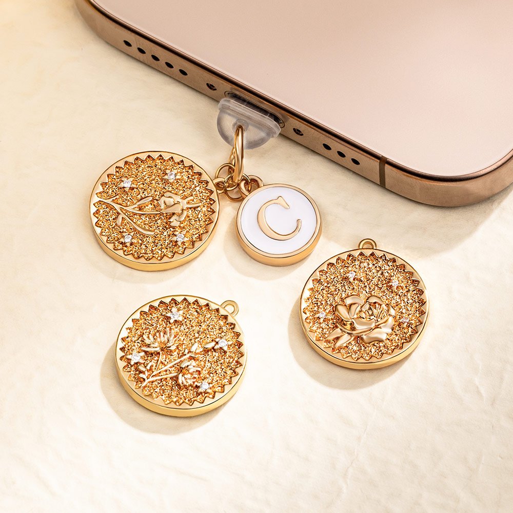 The delightful anti-dust plug cover features an exquisite design that seamlessly blends functionality with creativity. Options include charming sports ball themes, elegant books, and beautiful birth flowers. This accessory can also be added with a personalized initial charm that is sure to reflect your unique personality and interests.