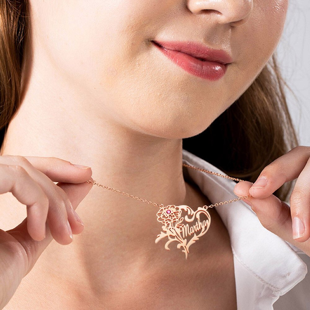 Each birth flower and birthstone carries its own unique meaning and symbolism, adding depth and significance to the necklace. You can make this necklace even more meaningful by engraving it with her name, initials, or a special message. It serves as a constant reminder of her birth month and the special qualities associated with it.