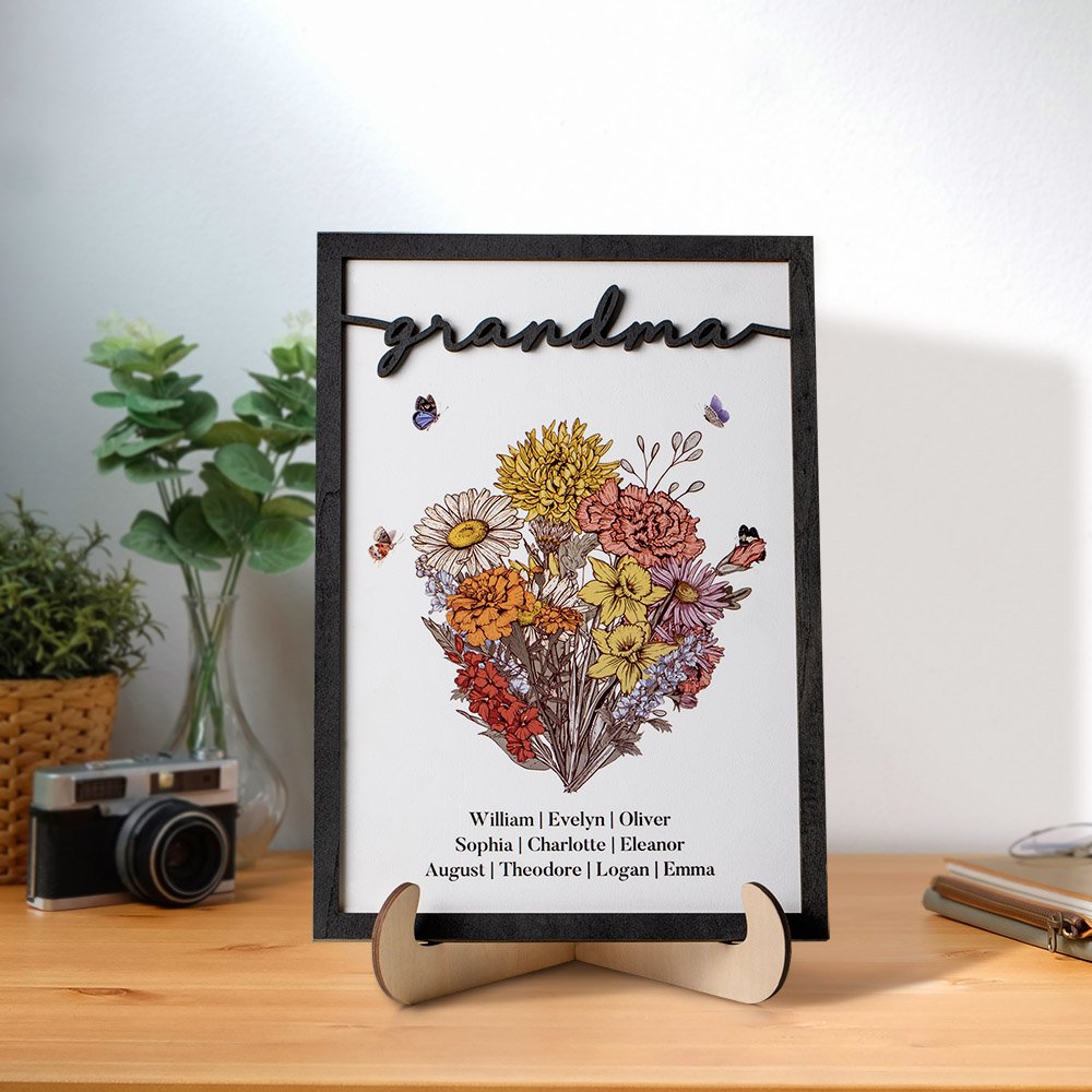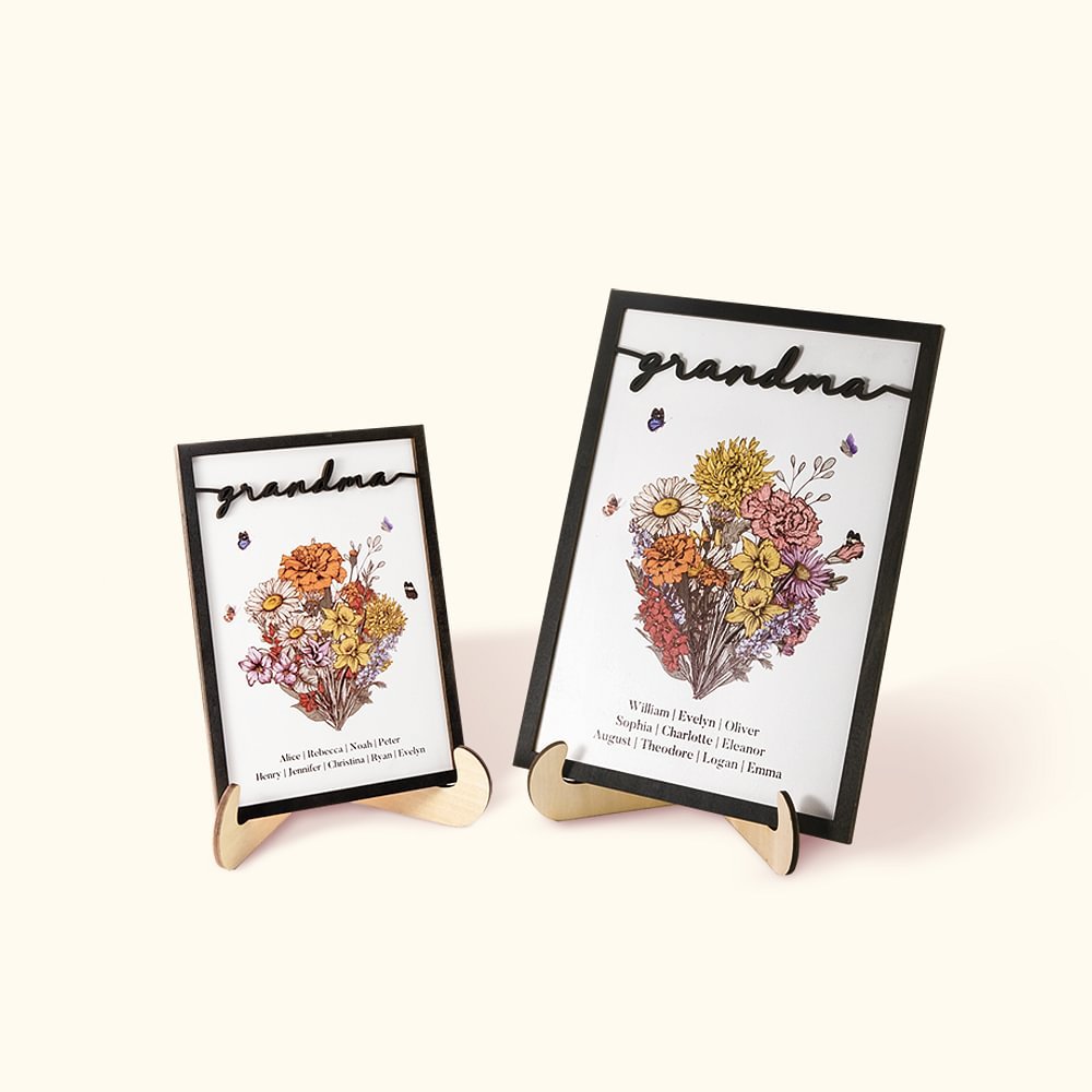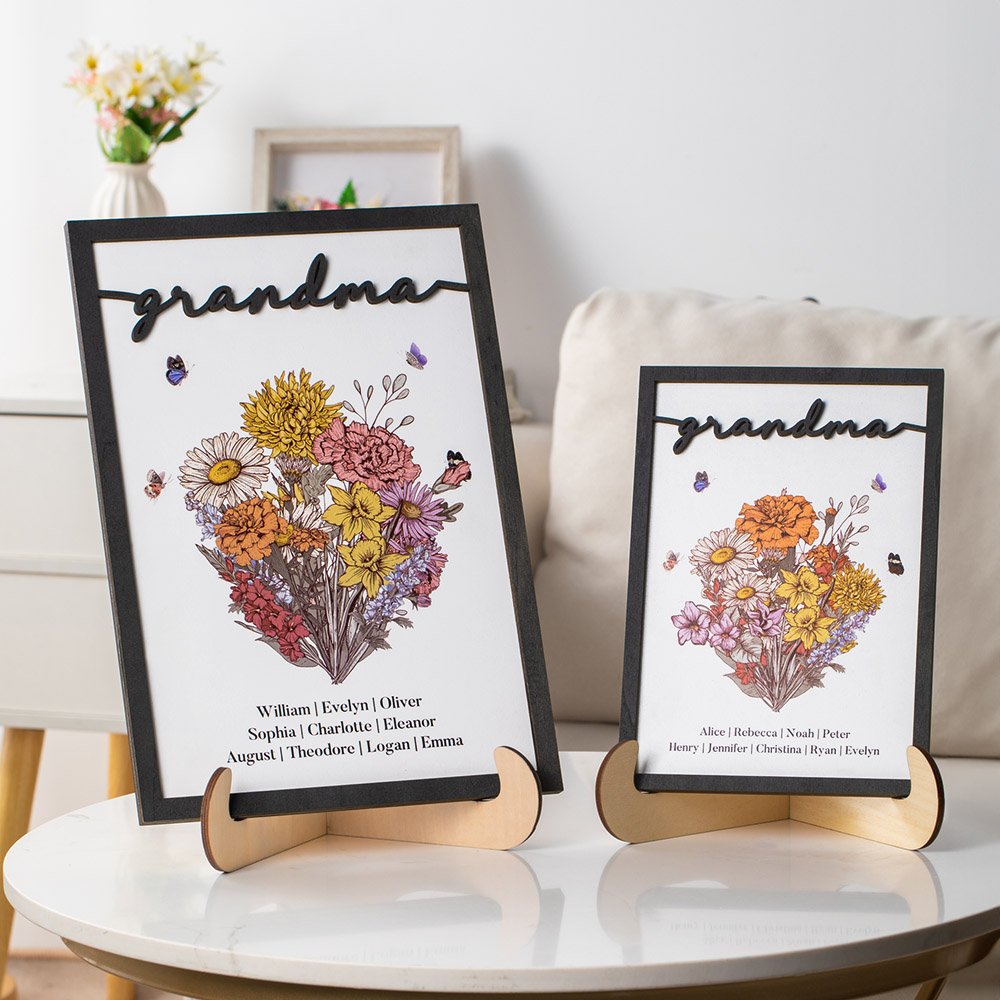 Each birth flower has a unique meaning and is thought to represent the qualities of people born in that particular month. Use these lovely flowers to represent each family member in the home, implying that the family will always be together, unified, and loving. Give your grandmother or mother a one-of-a-kind floral sign featuring the names of her cherished grandchildren or children.