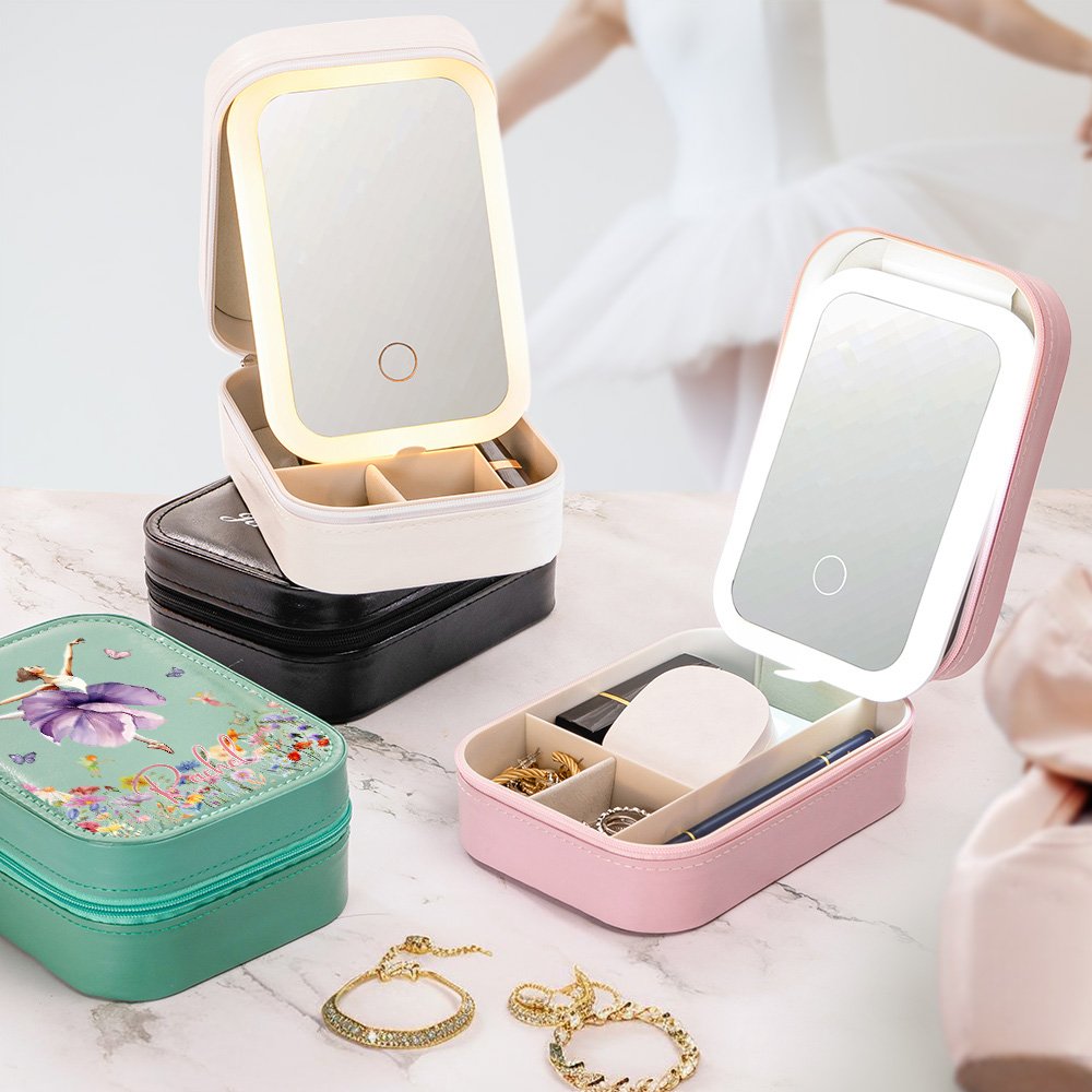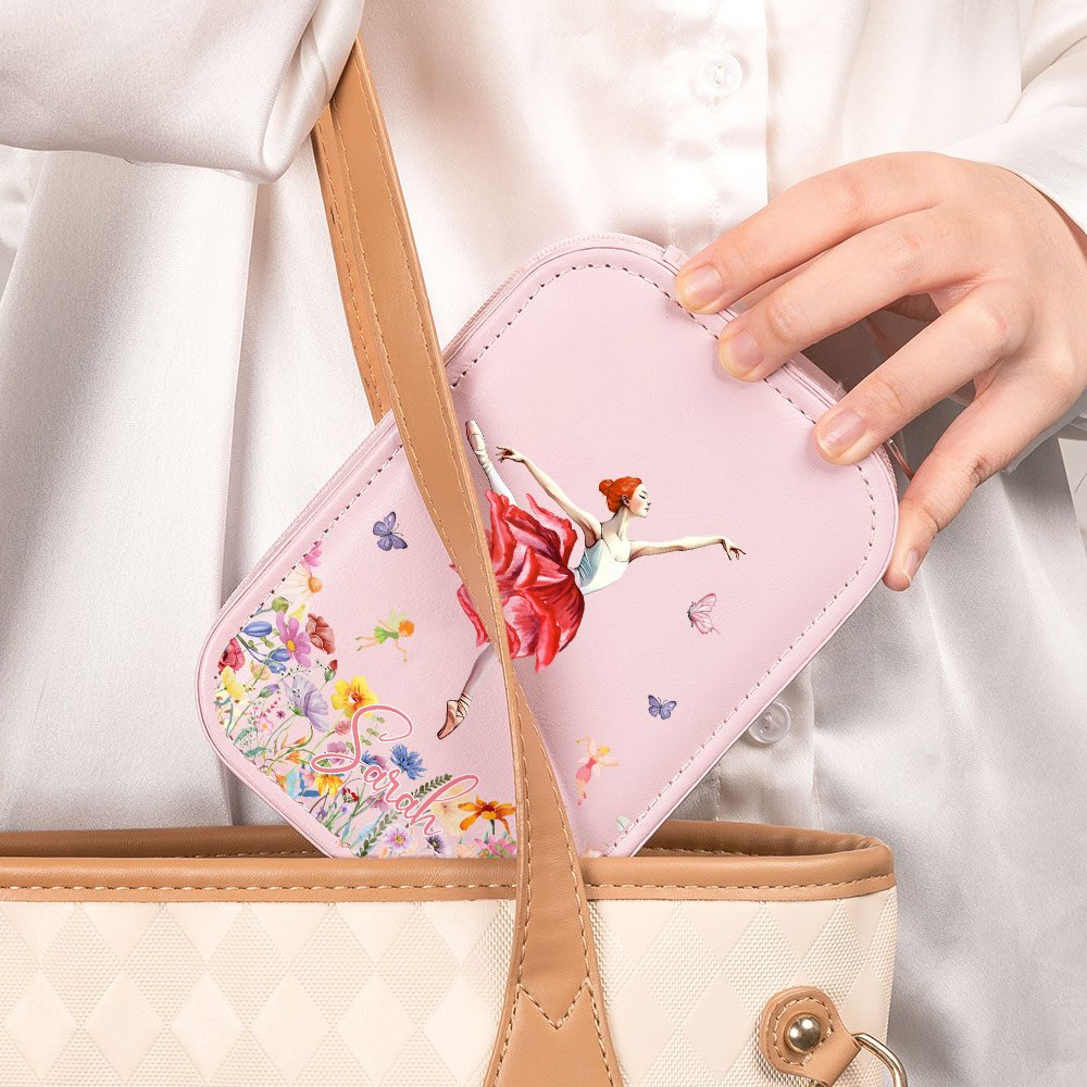 This jewelry box showcases a graceful ballerina in mid-dance, her tutu artfully transformed into a vibrant birthday flower. The central figure is encircled by a delightful ensemble of fluttering butterflies and blooming flowers, creating a visually captivating composition. You can personalize it with your name, transforming it into a unique fashion statement that combines artistic elegance and personal significance.