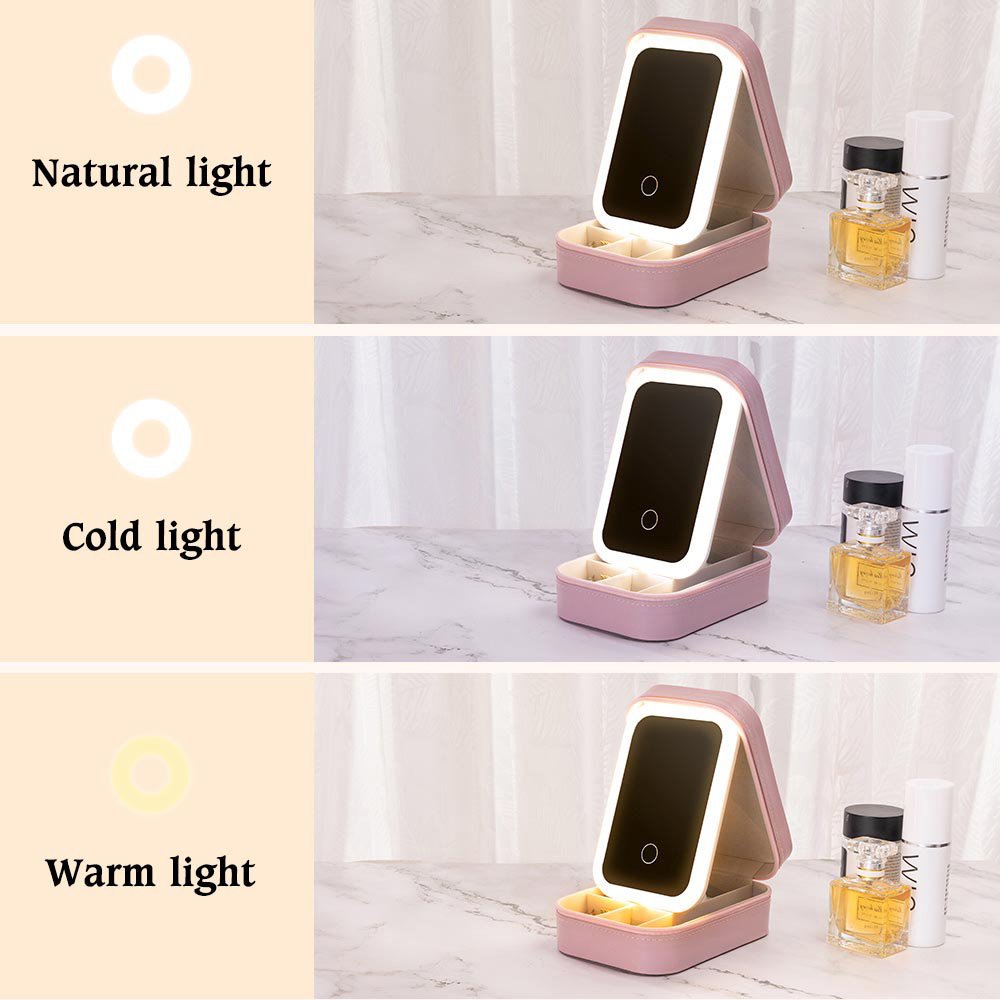 This jewelry box is made of high-quality PU leather and suede lining to ensure its durability and practicality. At the same time, the exquisite layout and multi-layer partition design of the interior make the jewelry storage more organized, effectively avoiding the risk of entanglement and damage. Moreover, this jewelry box has a built-in three-color adjustable LED light belt, providing a convenient lighting function and creating a warm and romantic picking environment.
