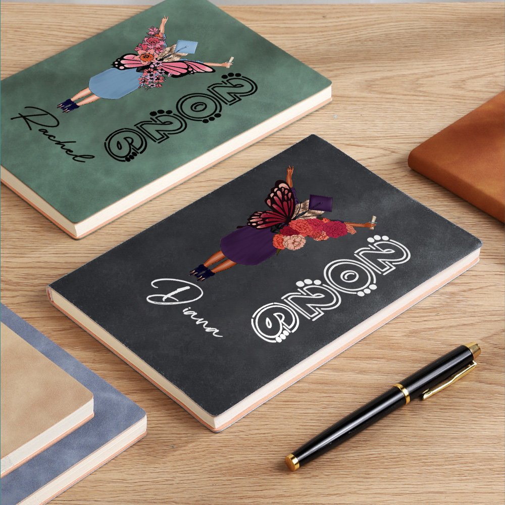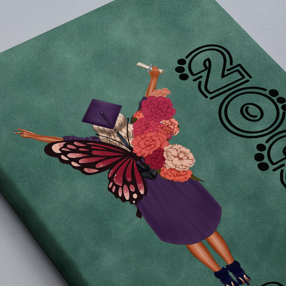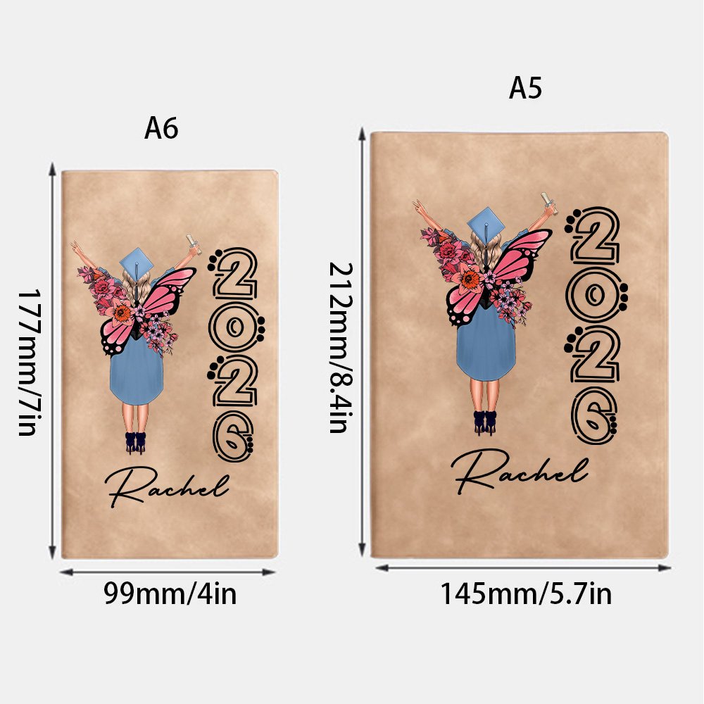 This notebook features a cartoon graduate character wearing a bachelor's gown, paired with a beautiful birth flower butterfly pattern, which is both beautiful and meaningful. In addition, the notebook supports customizing the name and graduation year, making it a unique personal item.