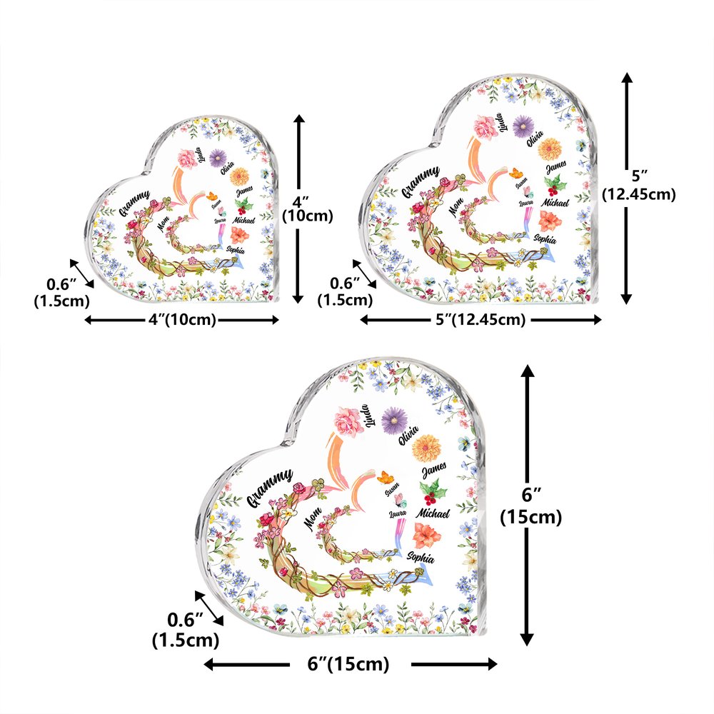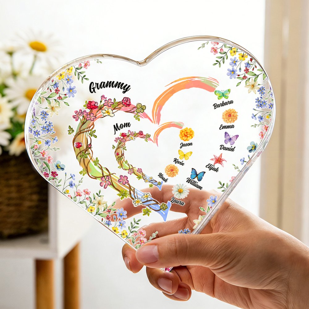 Personalized Birth Flower Butterfly Heart-Shaped Acrylic Plaque with Names Home Decor Mother's Day Gift for Mom Grandma