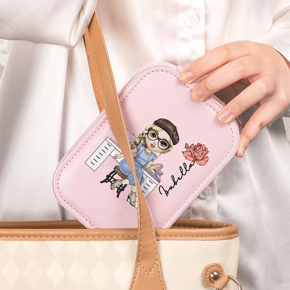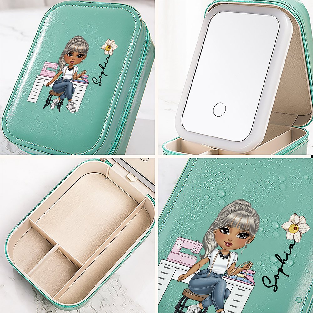 This jewelry box features a beautiful birth flower and a cute cartoon sewing character design based on your image, adding a playful and stylish atmosphere. Additionally, you can customize it with your name to make this box more unique.