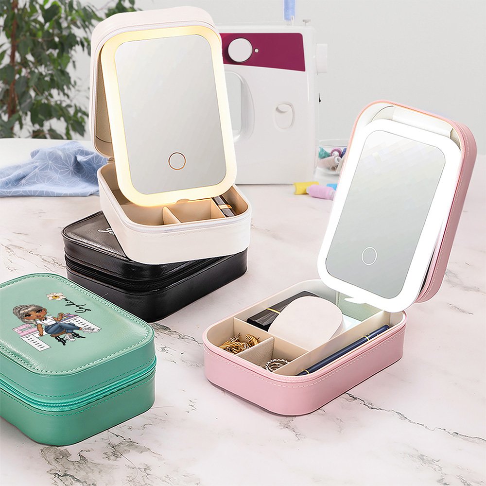 Its interior features multiple compartments, which can safely store jewelry of various sizes, such as rings, necklaces, earrings, or bracelets to prevent them from rubbing against each other or getting entangled. It also comes with a three-color LED adjustable makeup mirror, allowing you to check your look anytime, anywhere with ease. It is lightweight and makes it an ideal travel companion, providing you with a neat jewelry storage experience whether you store it at home or when traveling.