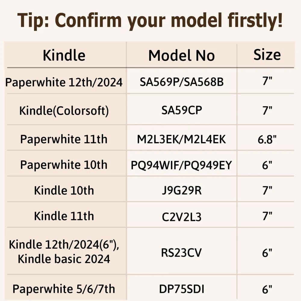 Measurement: Paperwhite 12th/2024/(7"), Kindle(Colorsoft)(7"), Paperwhite 11th(6.8"), Paperwhite 10th(6"), Kindle 10th(6”), Kindle 11th(6”), Kindle 12th/2024(6"),Kindle Basic 2024(6"), Paperwhite 5/6/7th(6")