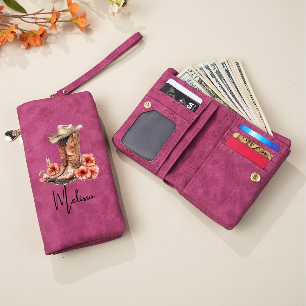This wallet features birth flowers and cowboy boots as its core design elements, blending natural elegance with Western flair to create a unique and fashionable visual appeal. Customize with personal text to add exclusive individuality, allowing every woman to feel a one-of-a-kind style expression during use, perfectly embodying a simple and generous lifestyle attitude.