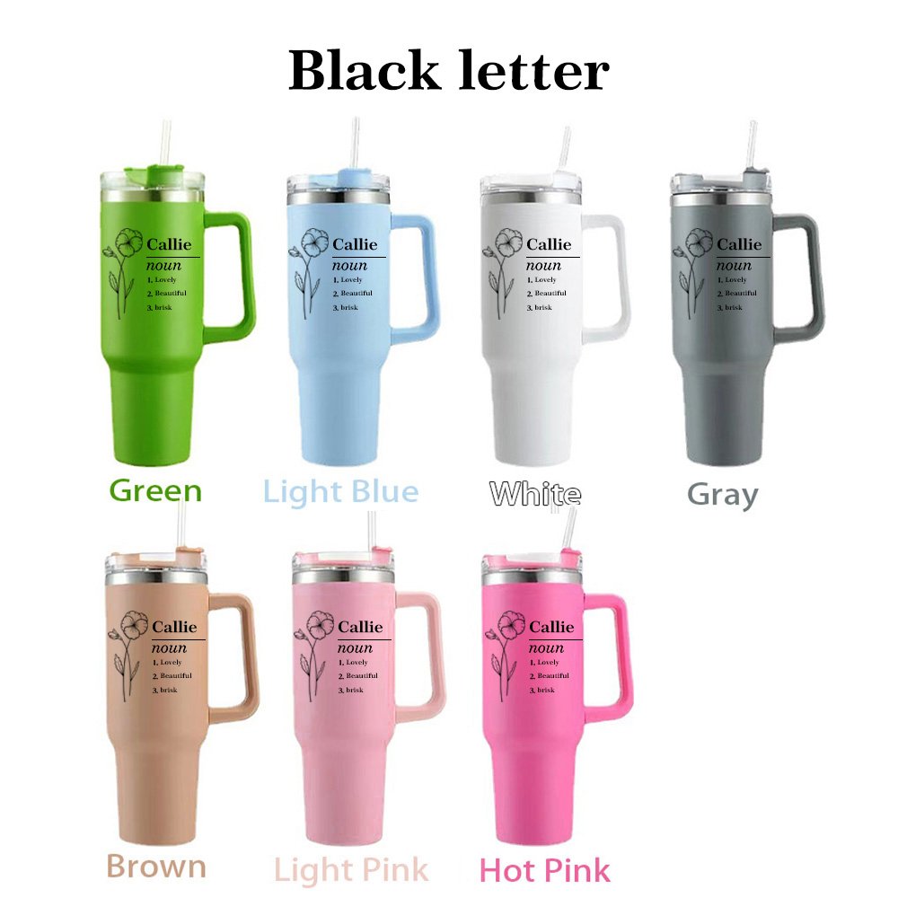 The tumbler body can be customized with a personal name and exclusive text, with 12 kinds of birth flower patterns, making each tumbler unique. You can customize the definitions of your name on the tumbler body to show your unique charm. The birth flower pattern is exquisite and delicate, adding a touch of vitality. The overall design is practical and beautiful, perfectly combining personalized elements and a sense of fashion.