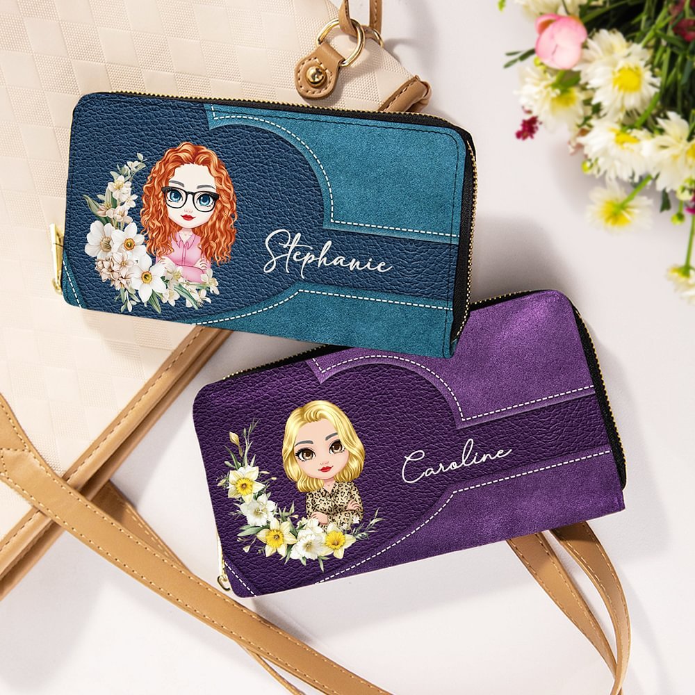 The wallet body showcases a stitched heart pattern, which instantly imparts a touch of warmth and love. Each one features a beautiful wreath design accompanied by cute cartoon characters representing the flowers of birth in various months. This symbolizes unique personalities, bestows blessings, and adds a layer of personal significance. What's more, you can customize the name according to your needs. This customization makes every wallet unique, allowing you to express your profound affection for your mother or grandmother in a truly special way.