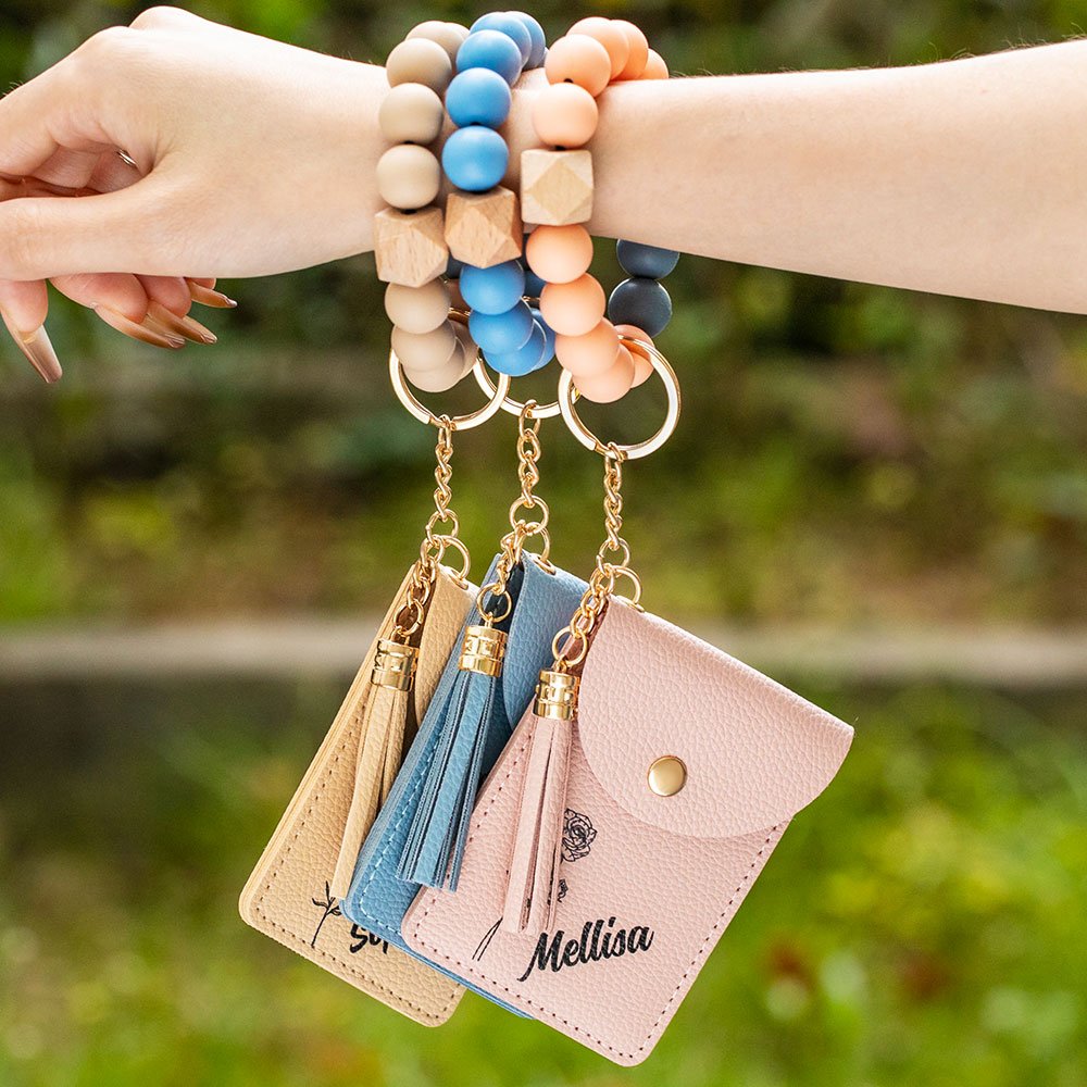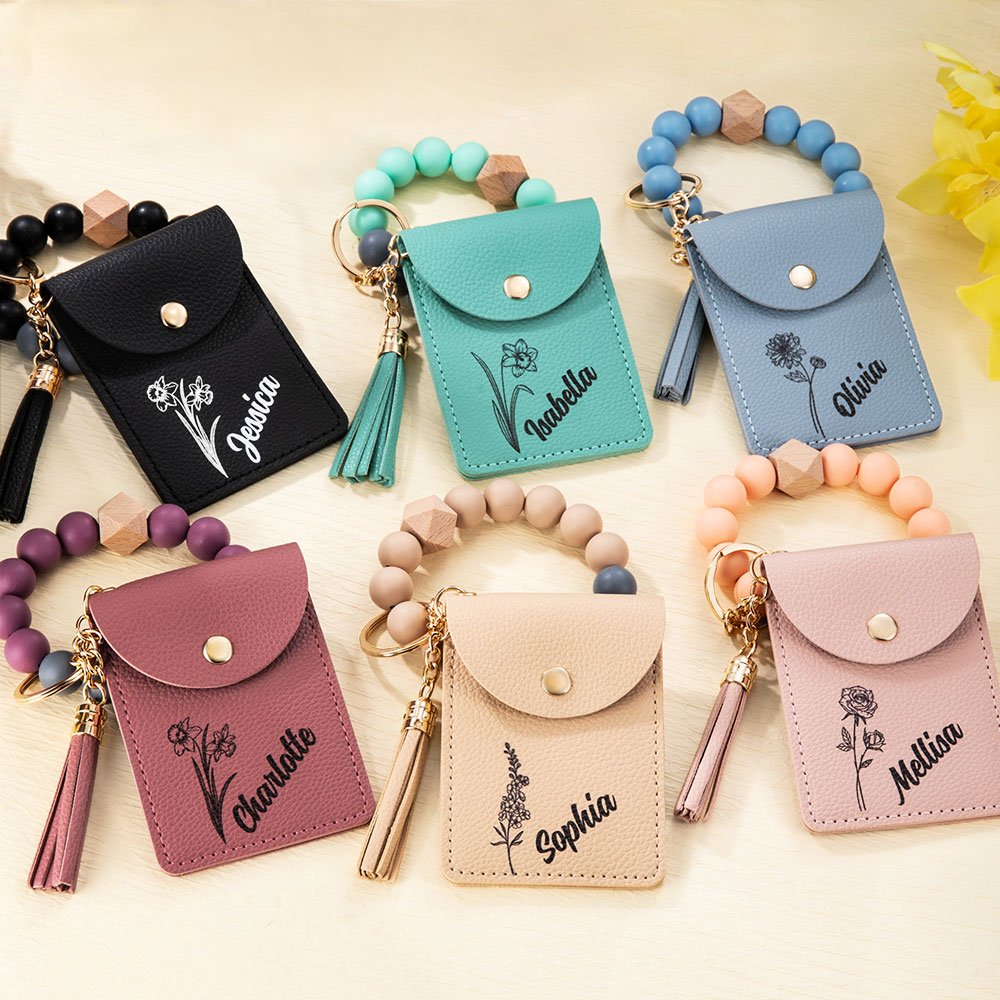 This wristlet wallet stands out with its unique design that combines elegance and practicality. The centerpiece of this accessory is a delicate birth flower charm, representing the recipient's birth month. Each flower carries its own symbolism, making it a truly personalized and thoughtful gift. The addition of beads and tassels adds a touch of flair and movement, making this piece a true eye-catcher.