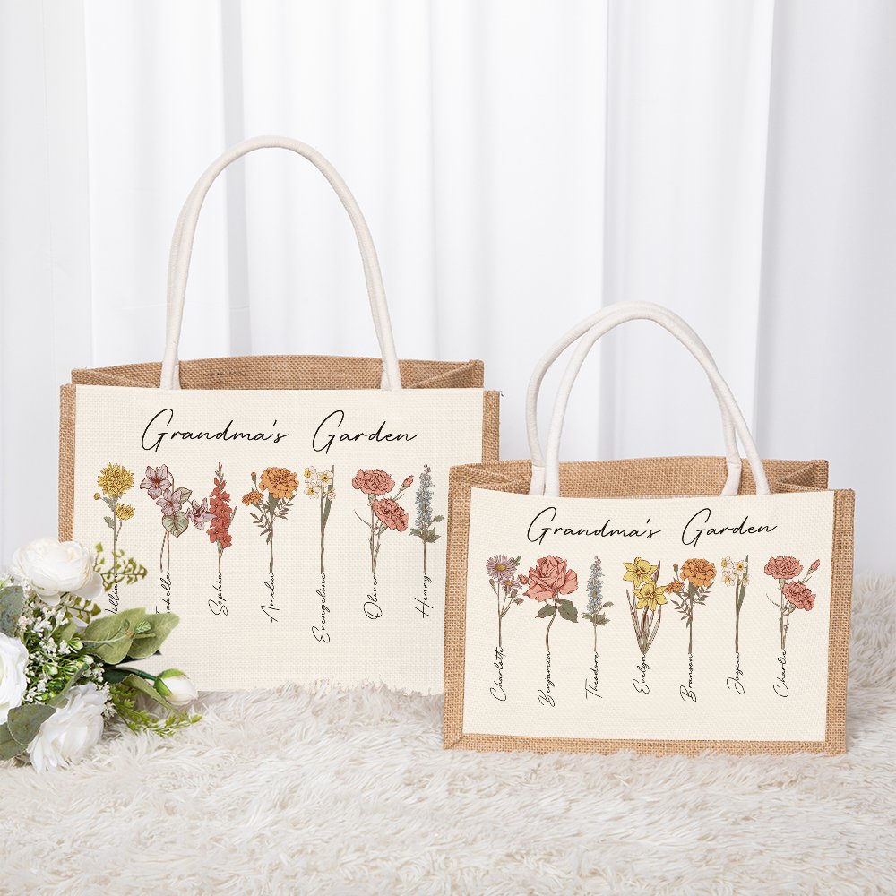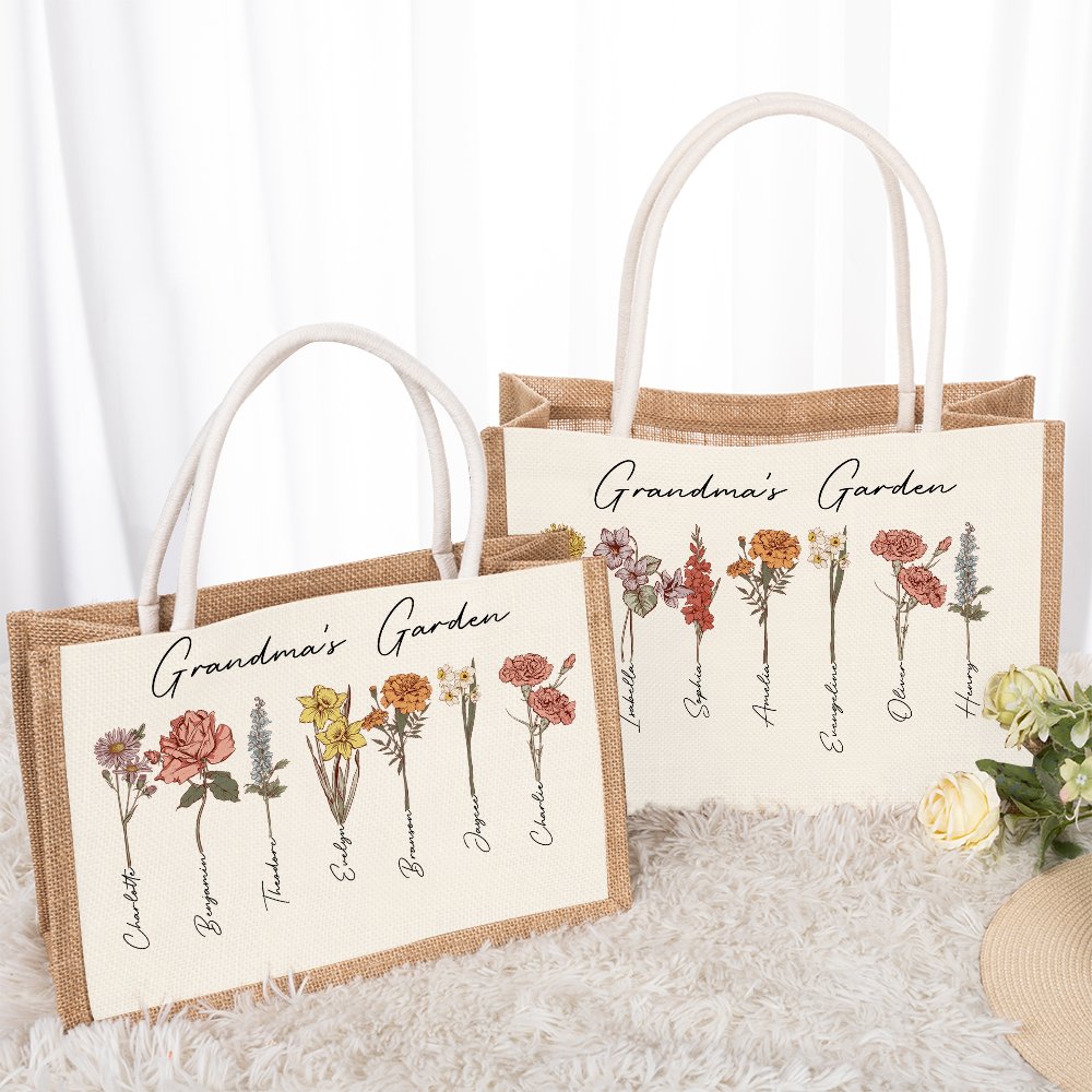 Our exquisite tote bag features a stunning birth flower design, where each flower represents a child's birth month. Personalized bags express love and admiration for mothers or grandmothers, creating a truly unique and meaningful gift.
