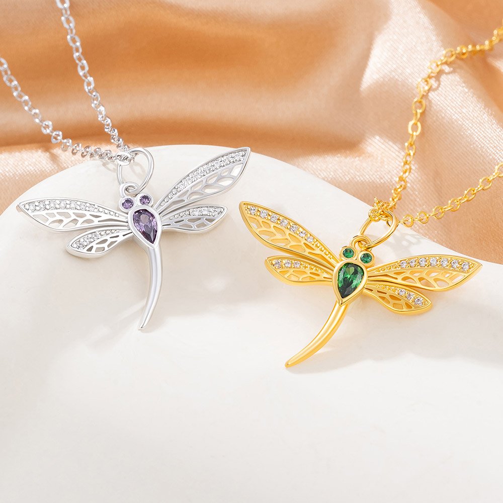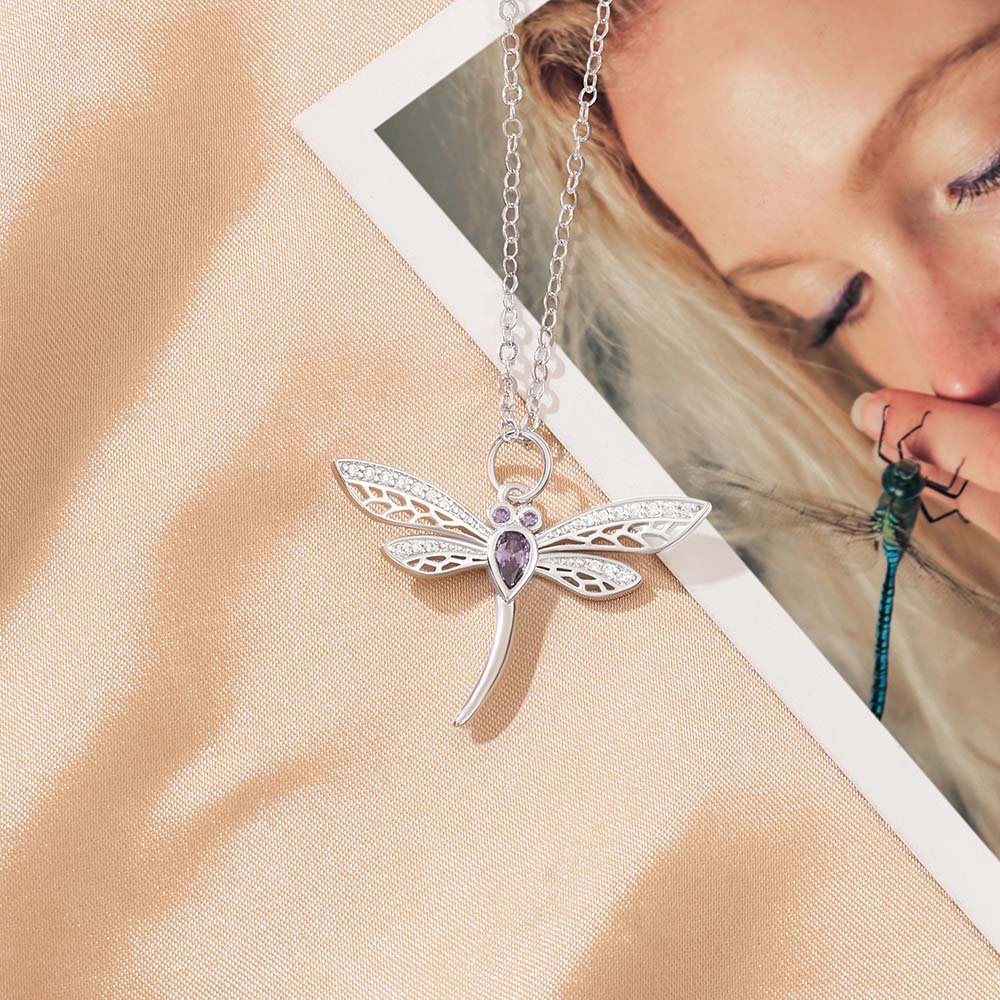 This necklace features a stunning dragonfly design, with the dragonfly wings adorned with zircon stones. Additionally, you can choose the birthstone corresponding to the recipient's birth month, making each necklace a unique and heartfelt gift for women.