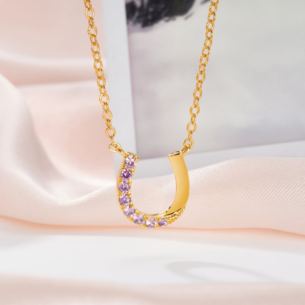 The necklace features a horseshoe design, set with dazzling zircons. The horseshoe is a classic symbol of good luck, and the exquisite combination of the horseshoe and birthstone makes this necklace stand out.