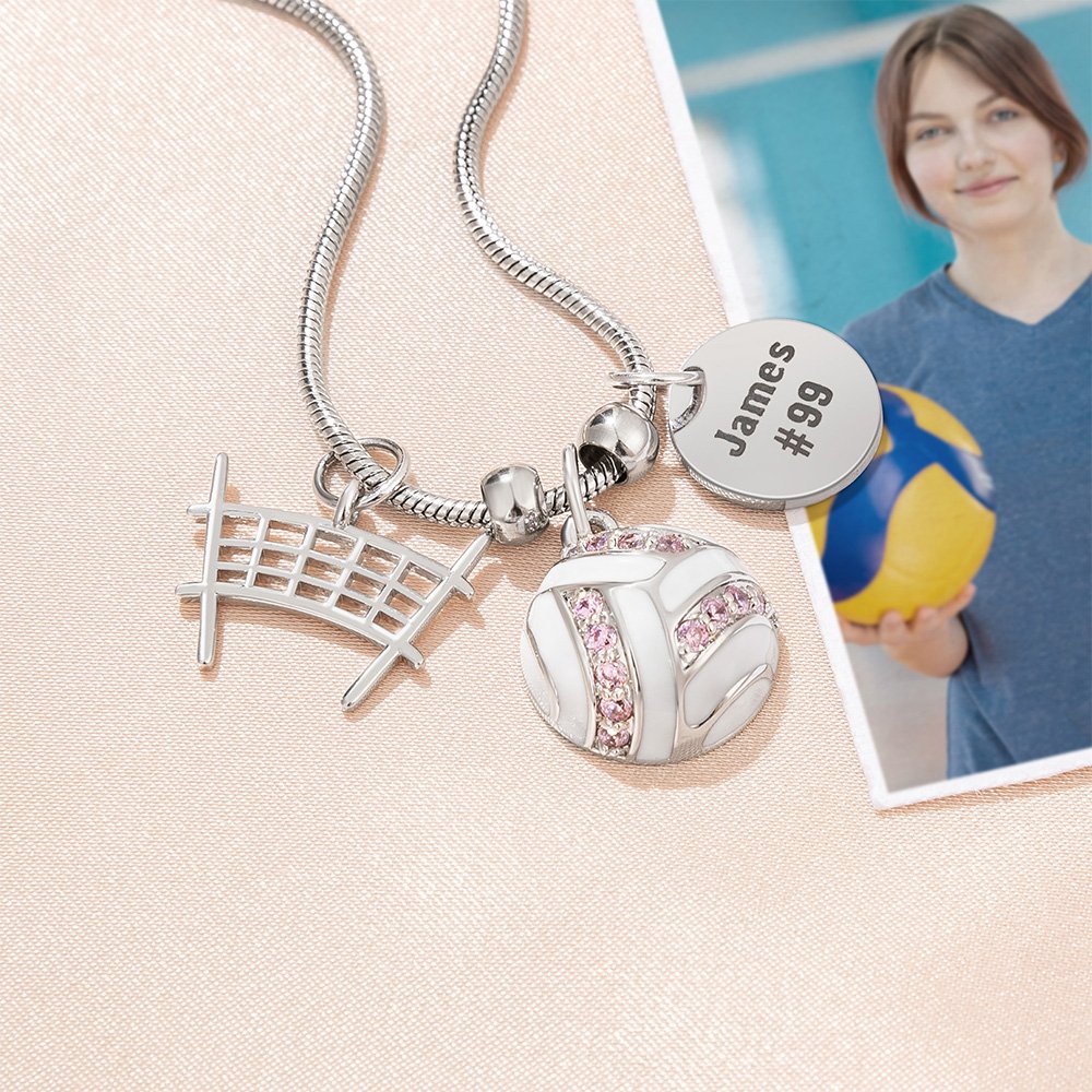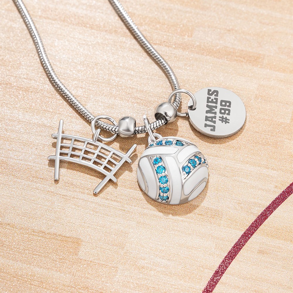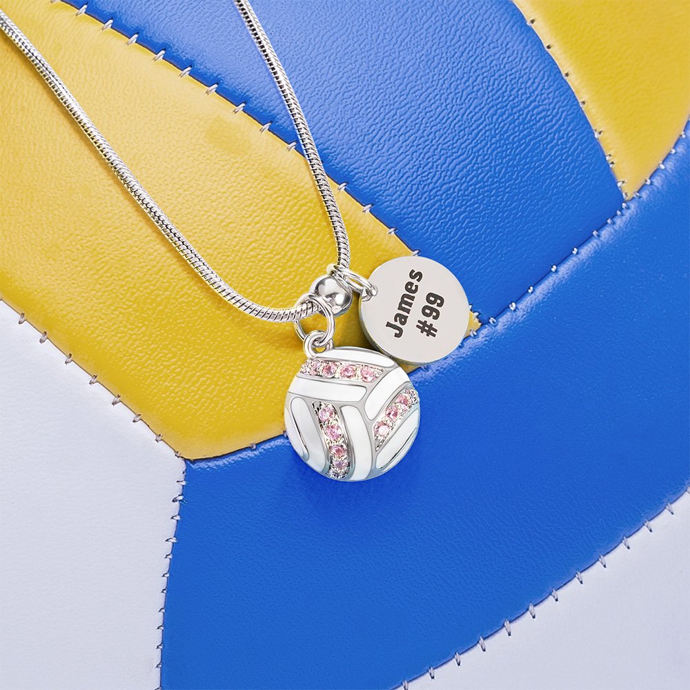 With the delicate volleyball-shaped pendant as the core element, this necklace adopts the birthstone inlay to perfectly restore the volleyball texture details, and the overall design is full of sports vitality and a sense of fashion. It is also equipped with a disc to support engraving services; you can add your personal name and jersey number so that each necklace becomes a unique personalized accessory for volleyball enthusiasts, a perfect expression of love for the sport.