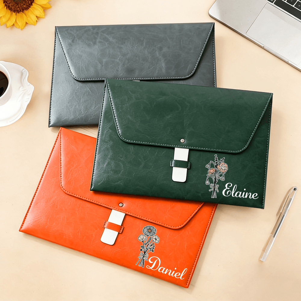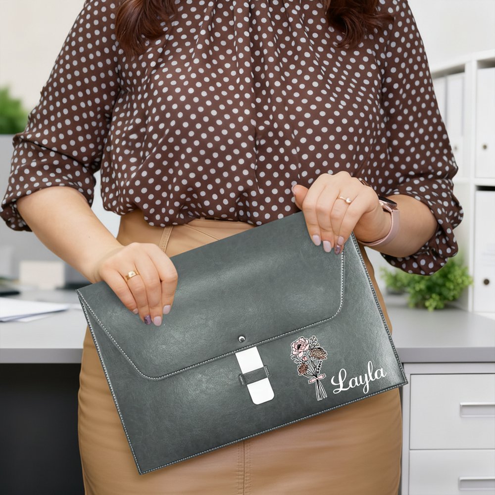 This file folder features an exquisite birth flower bouquet design, adorned with a delicate pink bow, exuding elegance. Customization with your own birth flower bouquet and name is available, perfectly blending natural symbolism with personalization. It showcases exclusivity and taste, combining style and individuality.