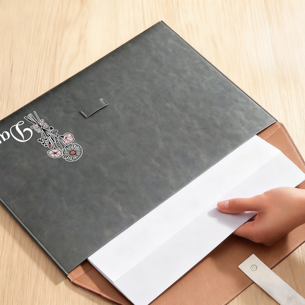 Made of high-quality PU leather, it has a smooth and lightweight feel, making it easy to carry. It boasts excellent waterproof performance, effectively protecting documents from moisture and damage. Equipped with a sturdy clasp, it firmly secures documents, preventing them from being scattered or lost, and protecting important documents. The overall workmanship is meticulous, ensuring it can withstand frequent use in daily office work and business travel.