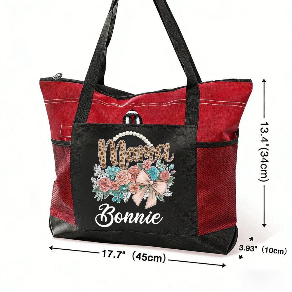 Featuring a stylish and elegant Mama floral bow design, this tote bag beautifully blends sophistication, warmth, and everyday fashion. The soft floral details paired with the delicate bow element create a timeless and charming look that feels both cozy and refined. It supports personalized name customization, transforming an ordinary tote into a unique and meaningful gift. Available in multiple colors, it pairs effortlessly with daily outfits and adds a gentle, elegant touch to any style.
