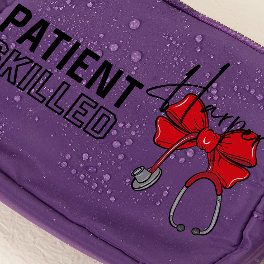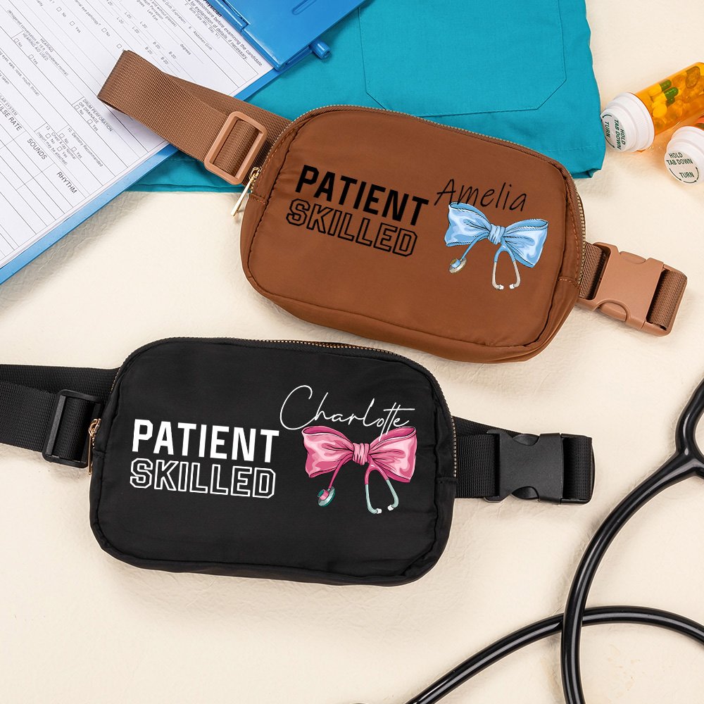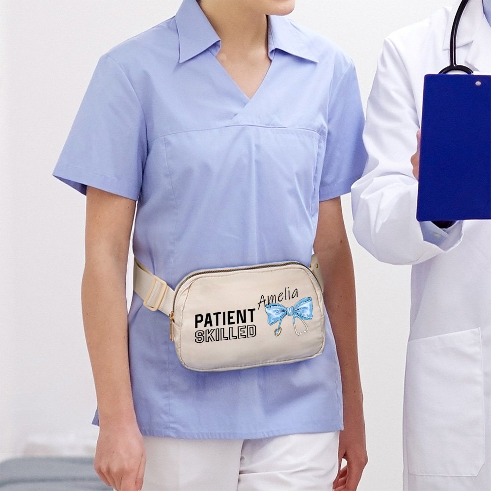 This waist bag is a fashionable and unique accessory for medical staff, which is designed with eight colors and eight patterns of bow stethoscopes. You can choose your favorite one. And it is paired with heartwarming text of “PATIENT SKILLED”, making the backpacker look more professional. Besides, you can customize it with your name to add a personal touch, making it stand out.