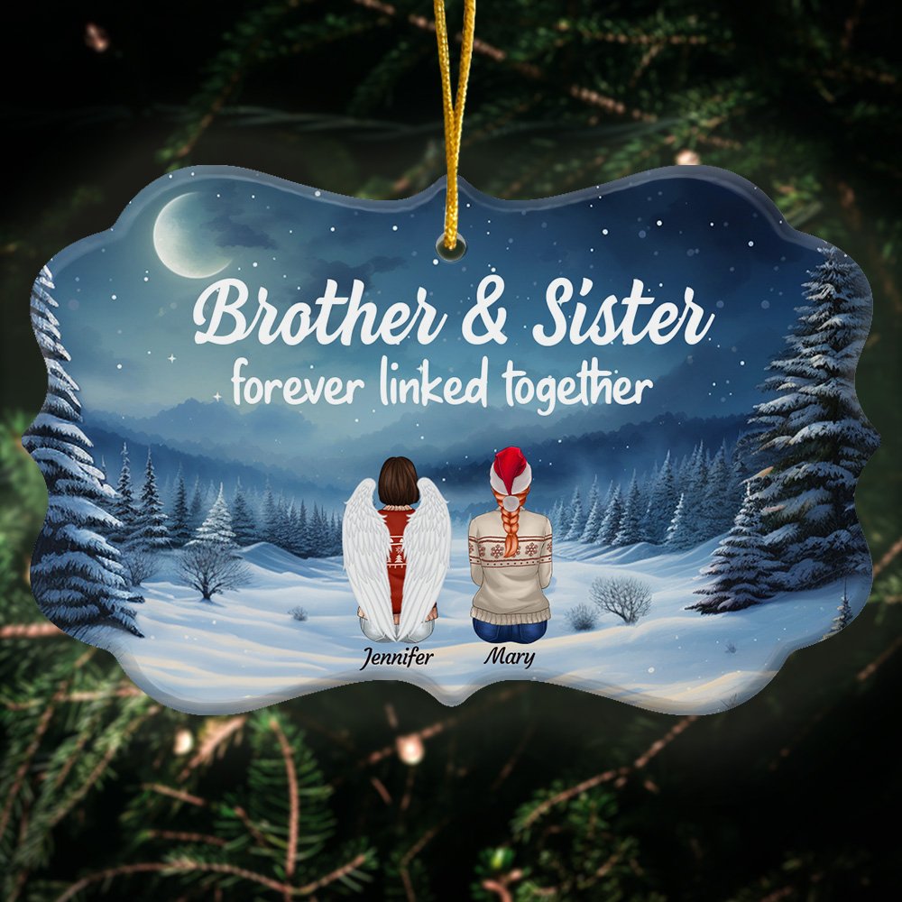 The heartfelt phrase "Brother And Sister Forever Linked Together" is elegantly printed on the ornament, serving as a touching reminder of the special relationship shared between siblings.