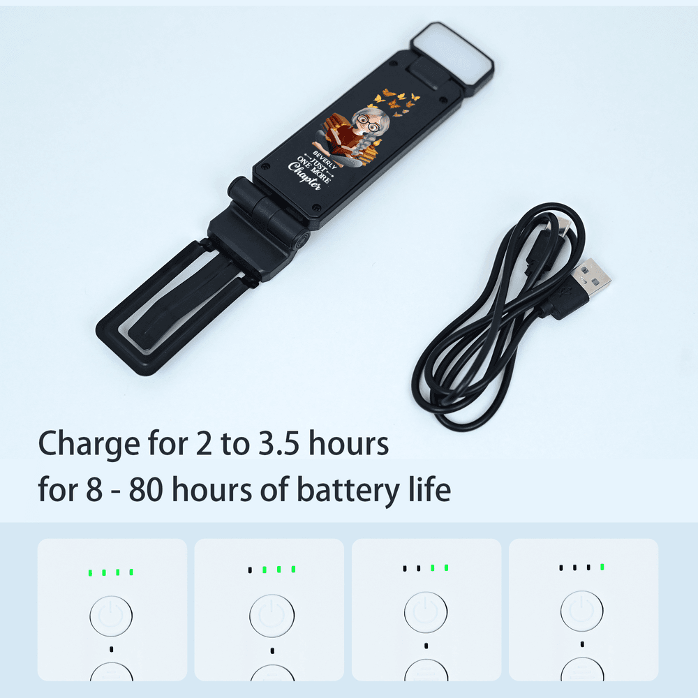 A customizable cartoon character and name grace the lamp's surface, with three color options available—white, black, and lake blue—transforming each light into a unique vessel for personal sentiment. The flexible lamp head rotates 360 degrees horizontally and adjusts 90 degrees vertically, while the bottom clip opens 180 degrees, effortlessly adapting to different reading postures and angles. Function and aesthetics blend seamlessly in this compact design.