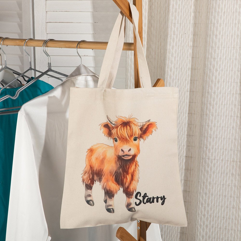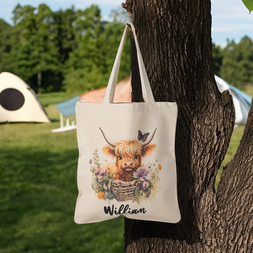 This tote bag is highlighted by a cute watercolor Scottish highland cow pattern. It supports personalization. You can add a name and choose your favorite pattern from 20 kinds to create unique and exclusive accessories. Whether you give it to friends, family, or yourself, it can be a thoughtful gift.