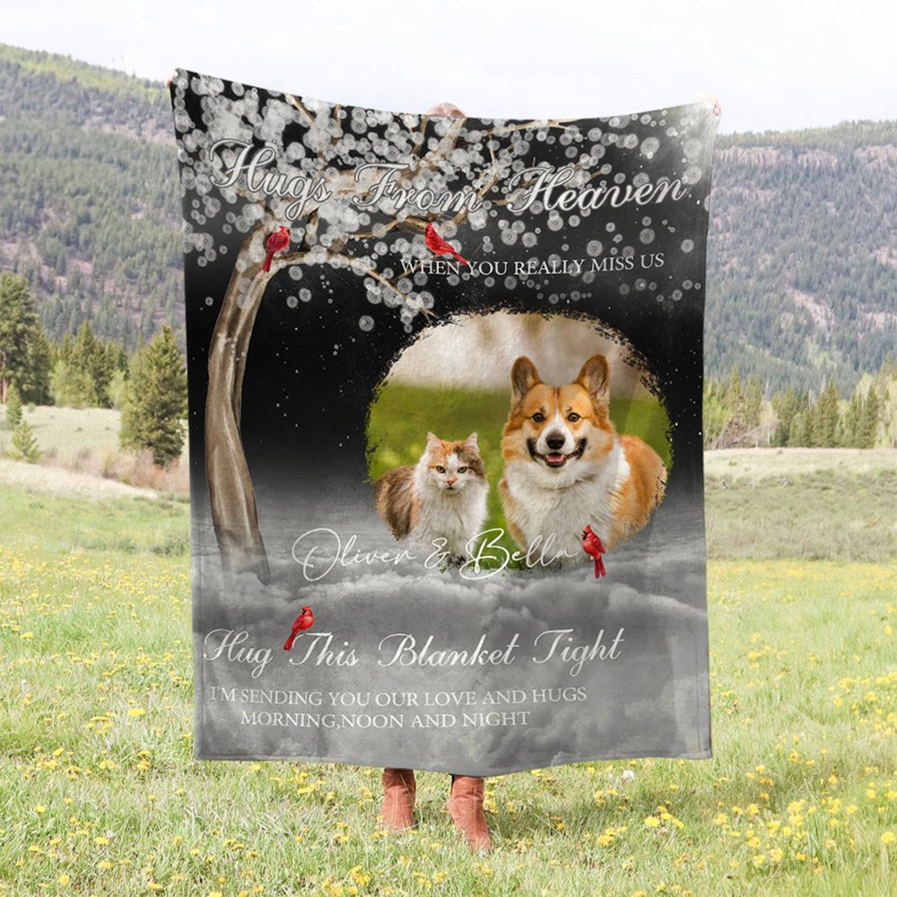 This custom memorial photo blanket allows you to personalize it with photos of loved ones, pets, or other memorable items. You can also add a custom name. With heartwarming hug messages printed on it, it serves as a tender way to remember deceased relatives or beloved pets.