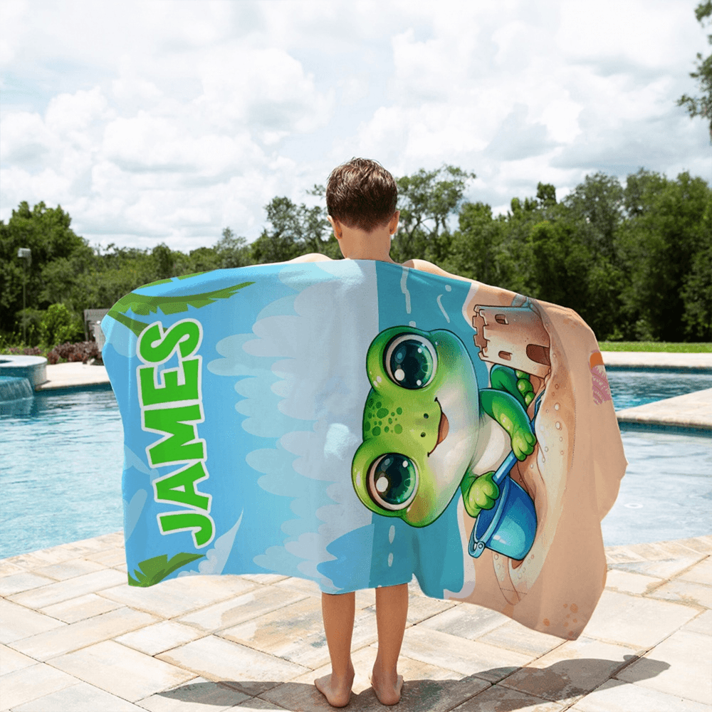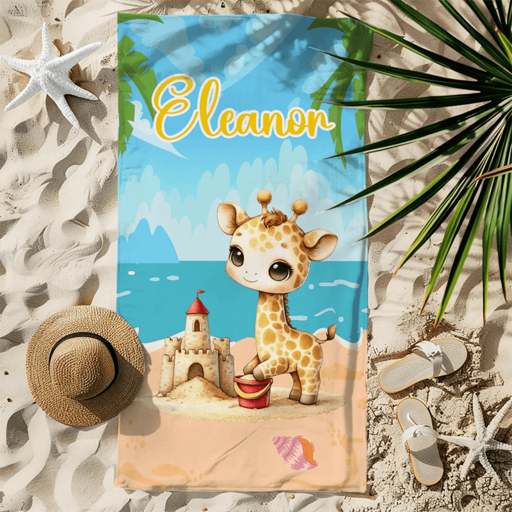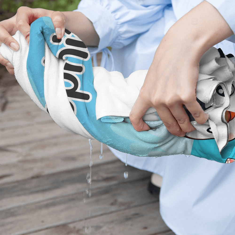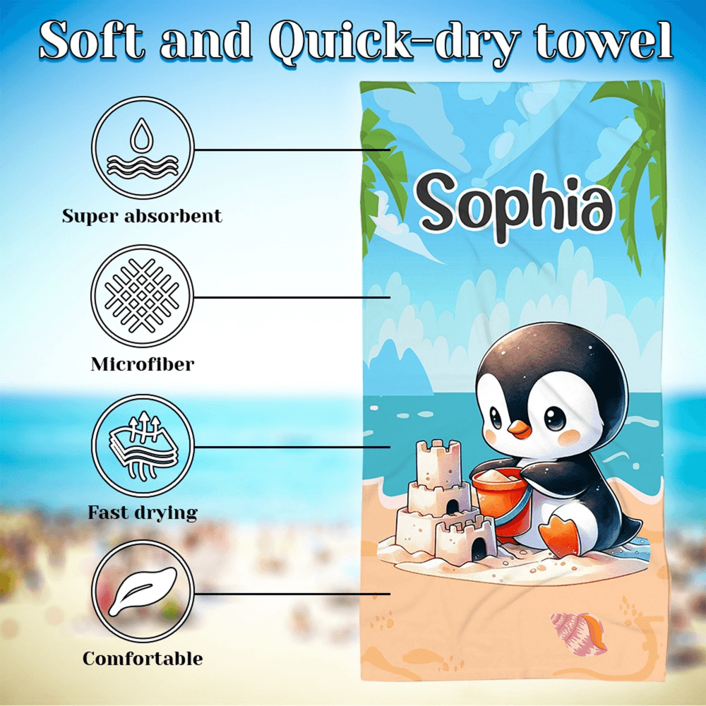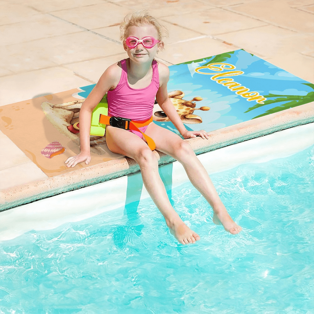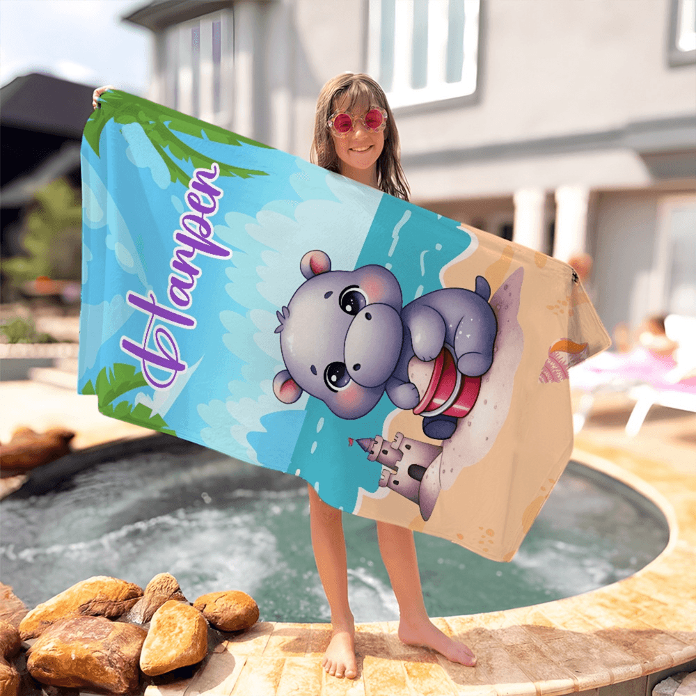 Personalized Cartoon Animal Quick Dry Oversized Beach Towel with Name Travel Essential Beach Party Birthday Anniversary Gift for Family Children