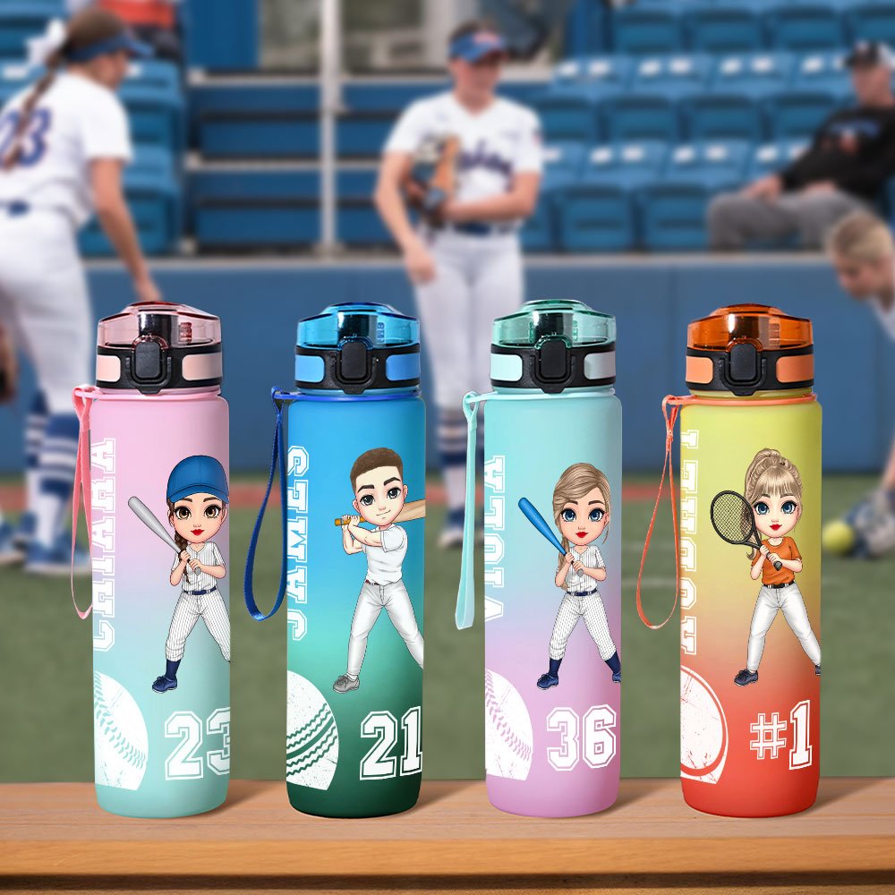 This water bottle adopts an exclusive customization service. You can add your name and number according to your needs, and it is equipped with cute and dynamic cartoon images of baseball, softball, cricket, badminton, etc., which are very interesting and commemorative. There are four gorgeous gradient colors to choose from, which can make your water bottle stand out from the crowd and become your unique symbol.