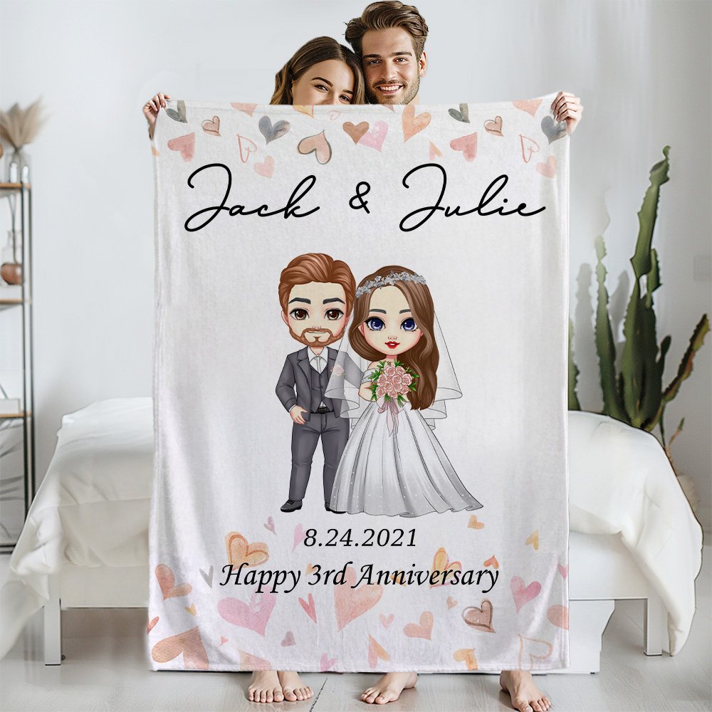 This blanket features a warm cartoon bride and groom design that is eye-catching. Not only can you print the couple's names, but you can also customize the date and text to add a unique romance and joy to your life.