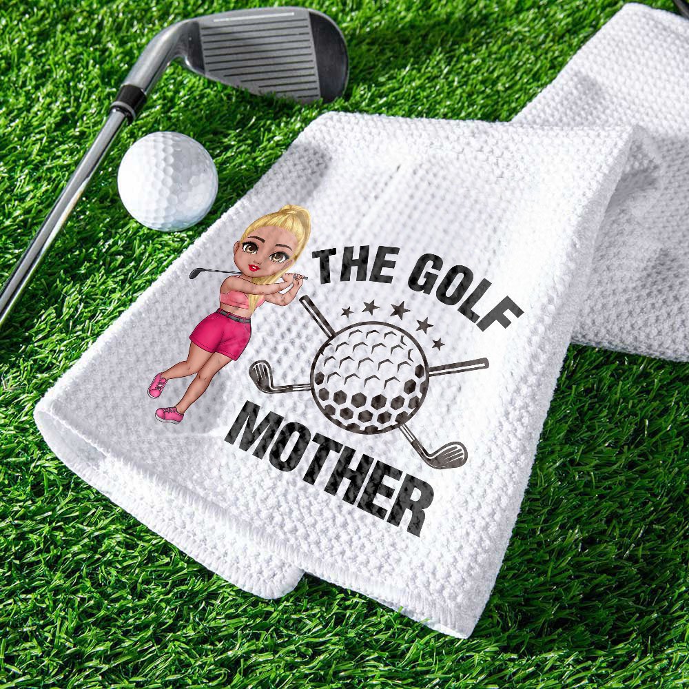 This waffle golf towel features an adorable golfer cartoon design with the option to customize it with a name and comes in two styles. This personalized touch makes it an excellent accessory for any golf enthusiast, ensuring it's as unique as the player who uses it.