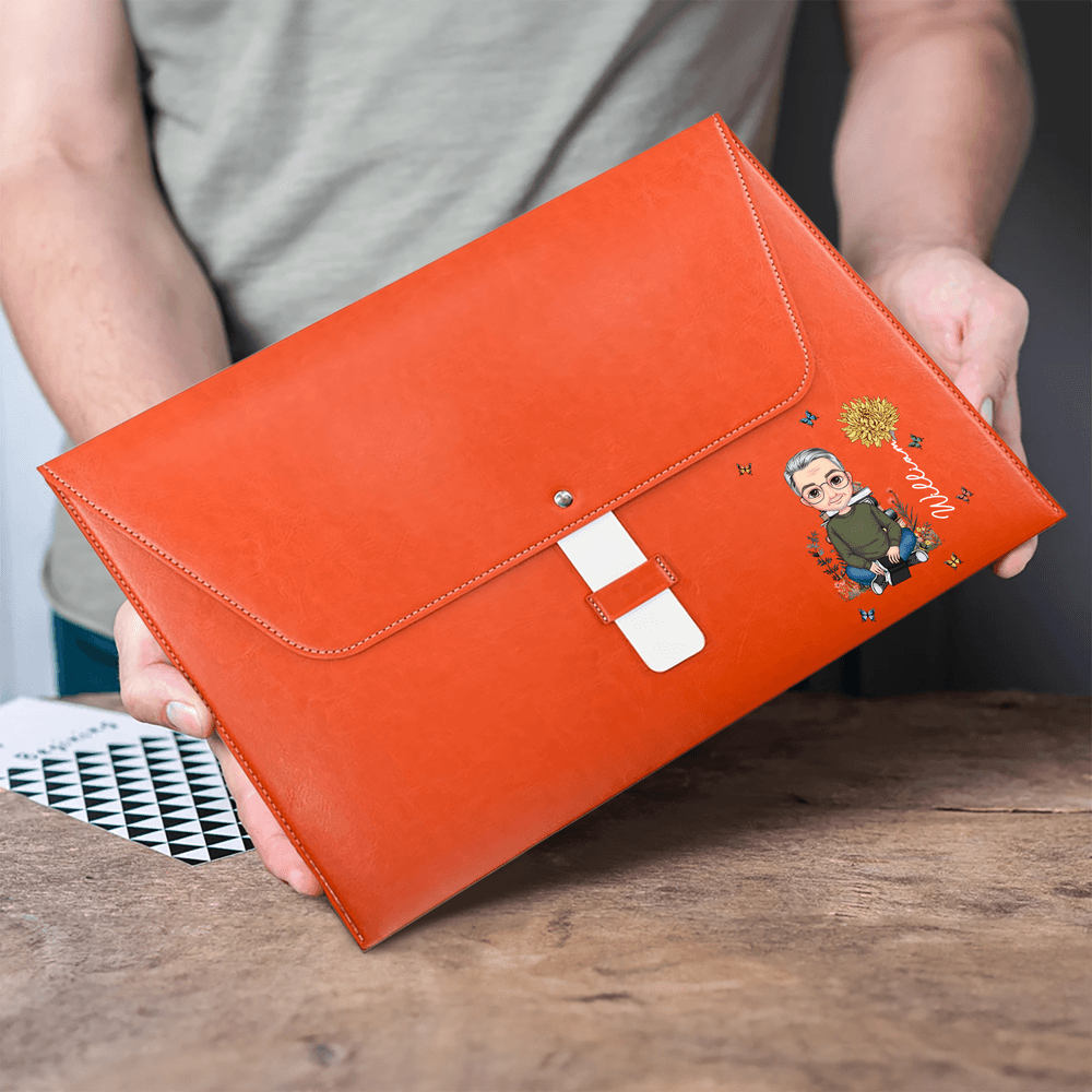 Personalized Cartoon Character Birth Flower PU Leather File Folder Briefcase with Name Business Trip Supplies Birthday Gift for Bookworms Family
