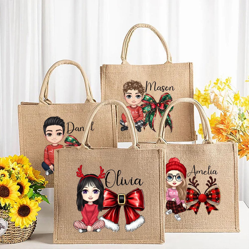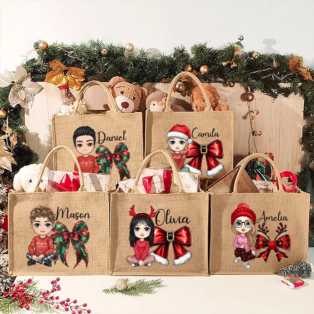 This tote bag uses a Christmas theme design, combining a Christmas bow and cartoon character elements to create an intense holiday atmosphere. The Tote bag has the individual's name, making it even more distinctive.