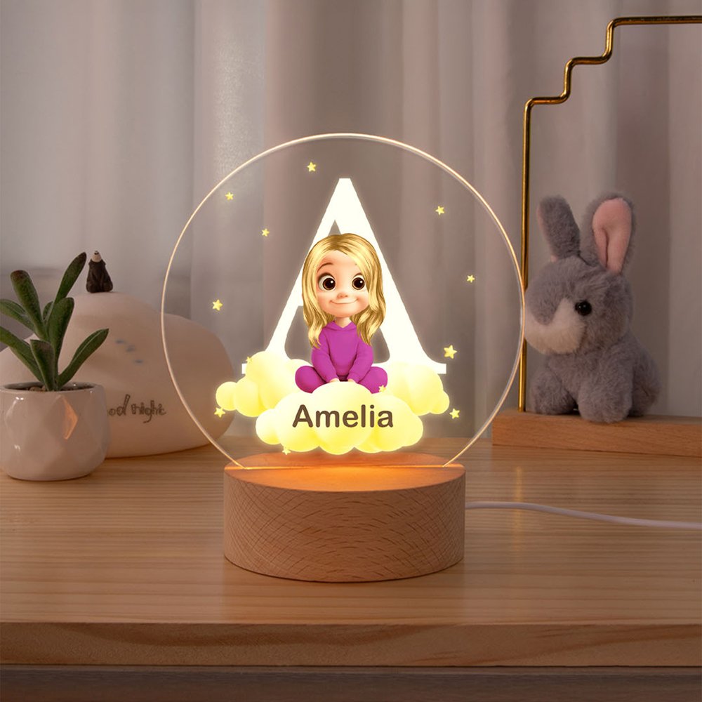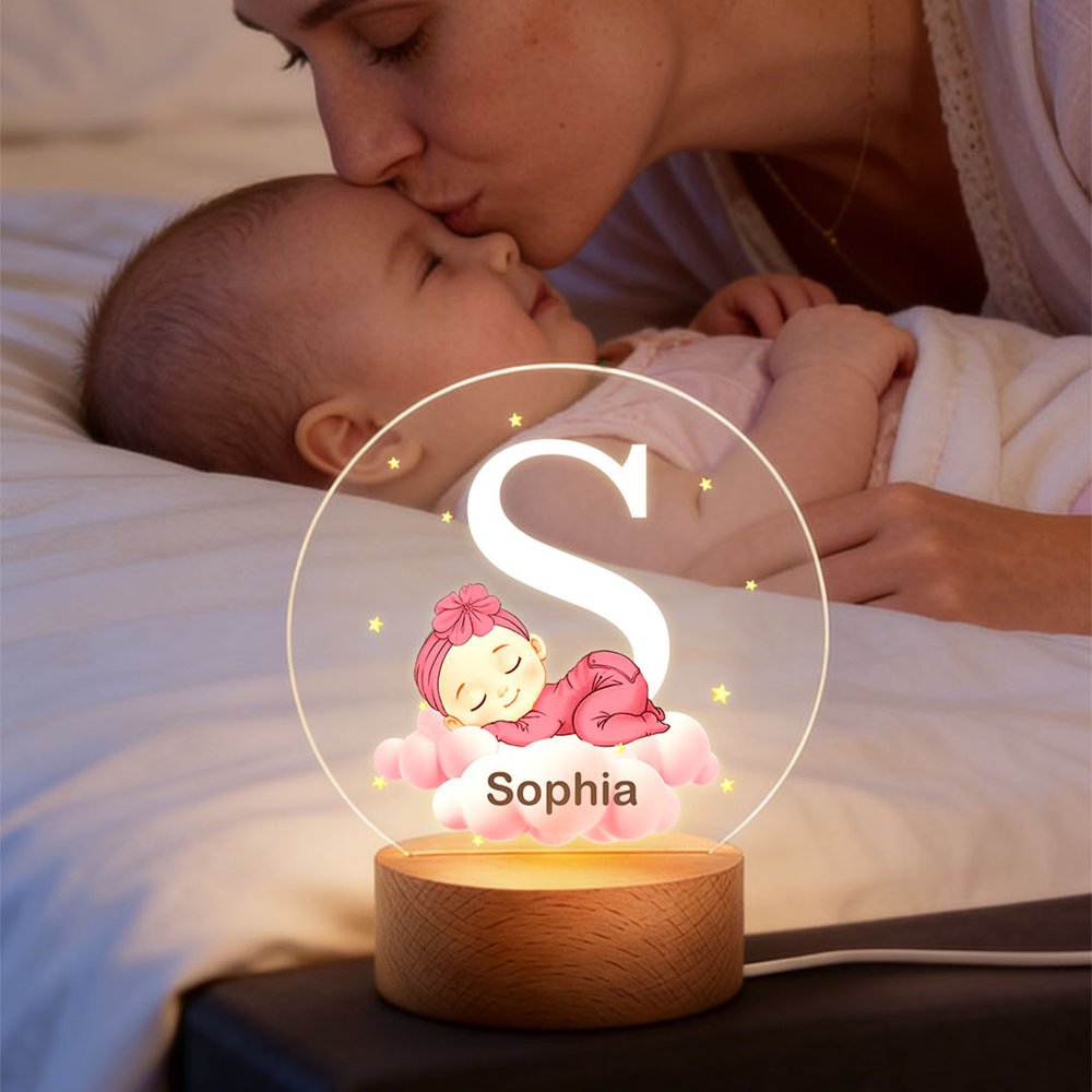 This acrylic night light ornament features cartoon infant images, clouds, and stars as its core design elements, creating a dreamy and warm fairy-tale atmosphere. Customize with your baby's name to craft an exclusive personalized piece, serving as the first lamp to accompany your baby's growth and warm their childhood.