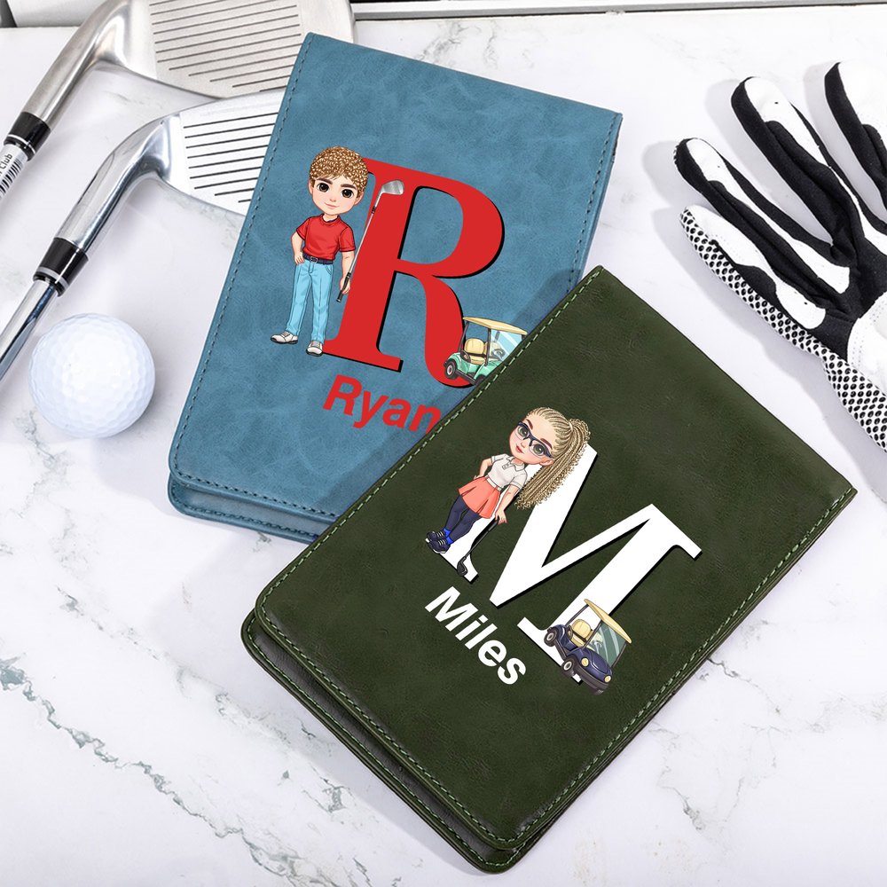 You can create a one-of-a-kind scorecard holder by selecting a cartoon golfer character, choosing a large initial from A to Z, and adding a custom name in a stylish script font. The design pairs the cartoon figure with a golf cart and club, turning a practical accessory into a personal tribute that celebrates your unique style and passion for the game.