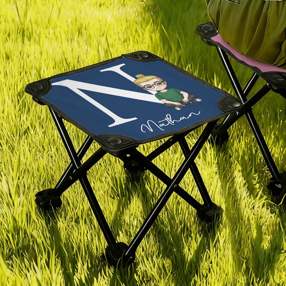 Centered around cartoon character imagery with custom name elements, this design offers a minimalist yet functional style that radiates a natural sense of exclusivity. It precisely aligns with outdoor enthusiasts' aesthetics and identity, showcasing their passion for adventure while strengthening emotional connections through personalized design. This transforms an ordinary folding stool into a cherished companion imbued with heartfelt meaning.