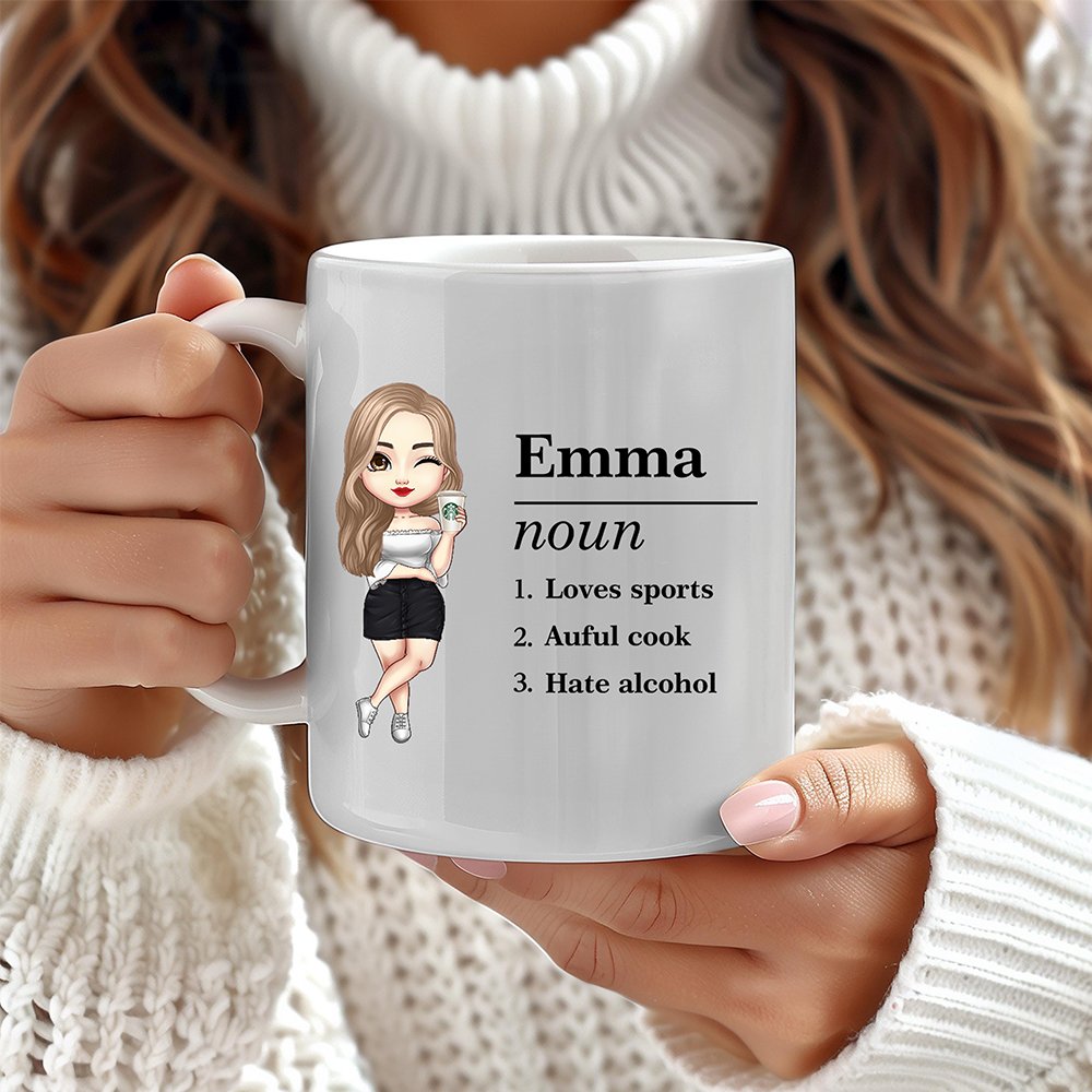 The mug body can be customized with a personal name and exclusive text, with a cartoon character design, making each mug unique. You can customize 1-5 definitions of your name on the mug body to show your unique charm. The overall design is both practical and beautiful, perfectly combining personalized elements and a sense of fashion.