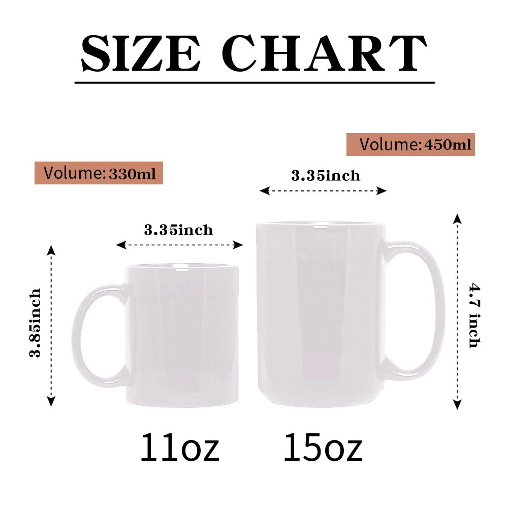 This mug is suitable for a variety of occasions, whether it is a family party, a friend's party, or an office break, it can become a highlight in your hands. Its stylish design and personalized elements allow you to show your unique taste and style for any occasion. In addition, it also offers two sizes of 11oz and 15oz for you to choose from, to meet the drinking needs of different scenarios.