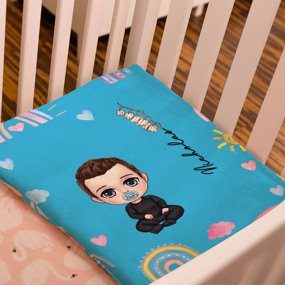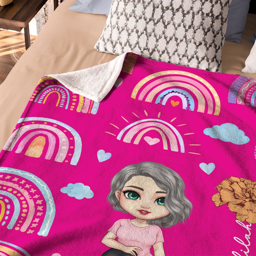 This soft blanket features adorable cartoon characters, birth flower patterns, and cute rainbow patterns that can be personalized with the recipient's name, creating a unique and charming gift for baby girls, baby boys, girls, boys, and women.