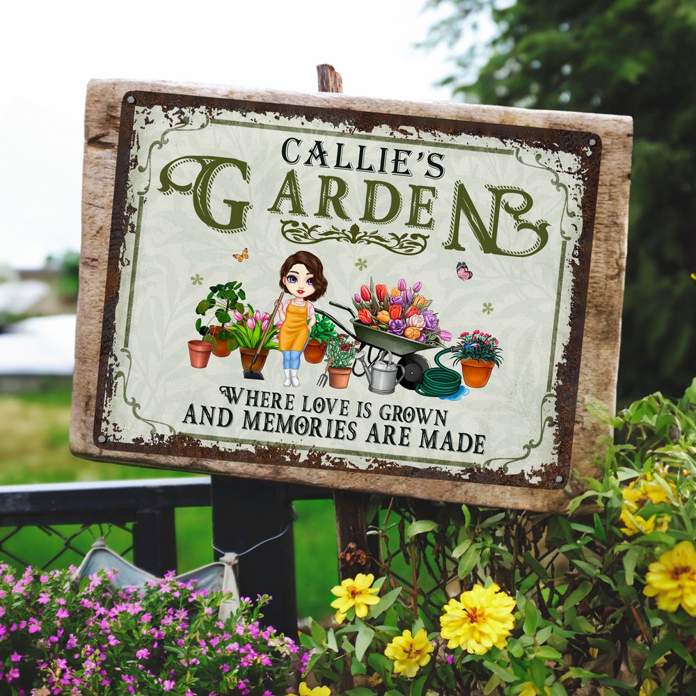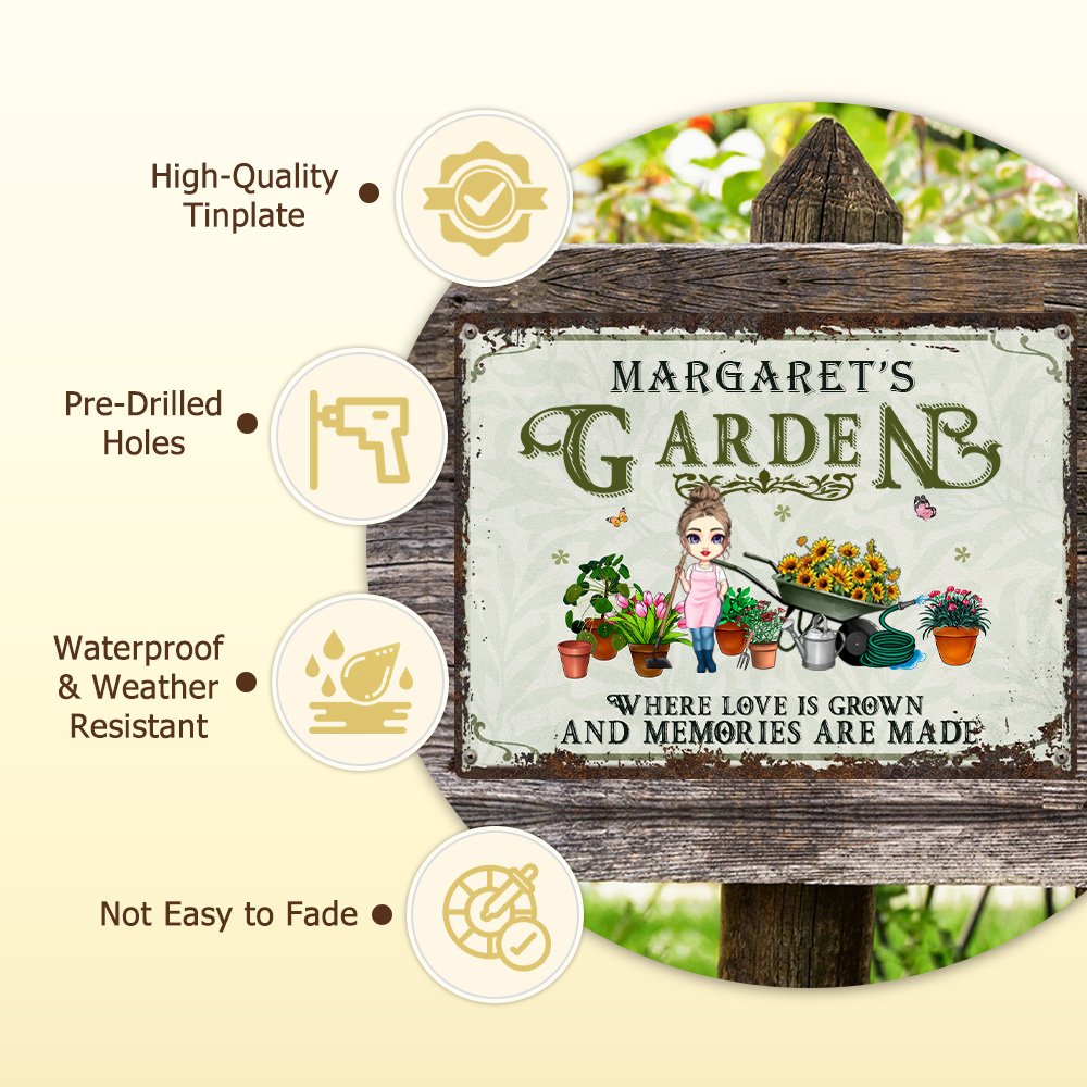 Personalized Cartoon Character Vintage Garden Metal Sign with Name Garden Decor Housewarming Birthday Gift for Grandma Mom Gardening Lovers