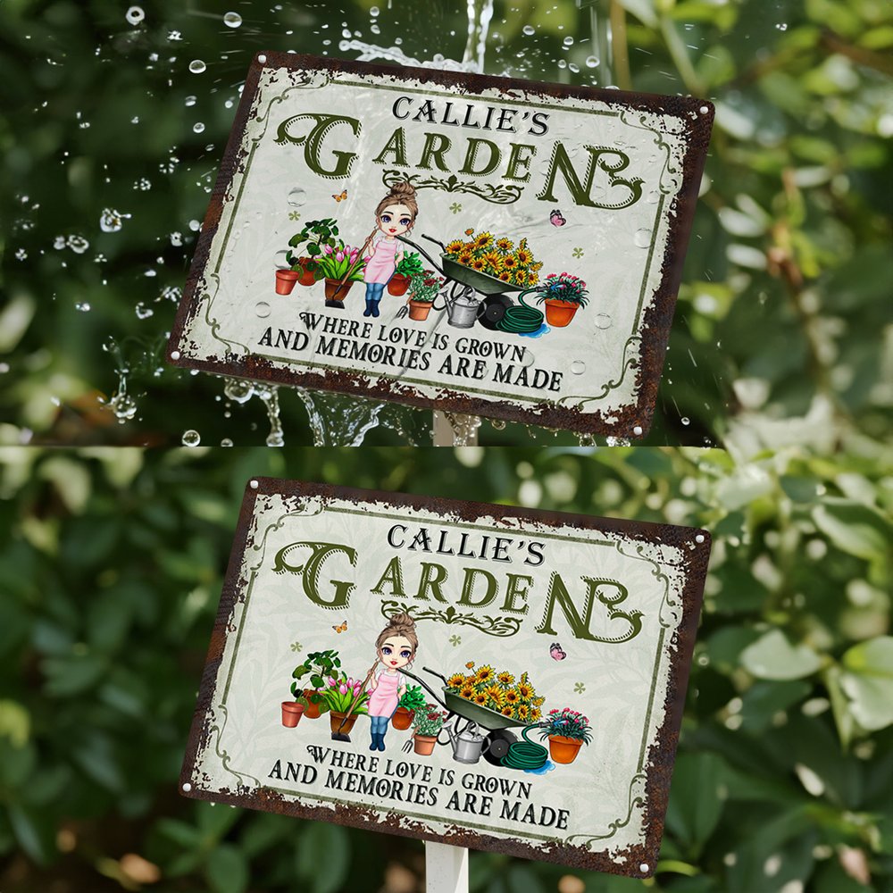 You can freely match cartoon characters, combine them with natural elements like flowers, potted plants, and butterflies, and even add your name. Integrate warm messages like “WHERE LOVE IS GROWN AND MEMORIES ARE MADE” into the design, making each metal sign a “personalized symbol” in the garden, showcasing your love for gardening and unique taste with exclusive customization.