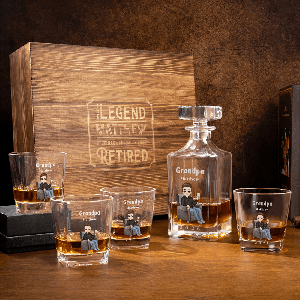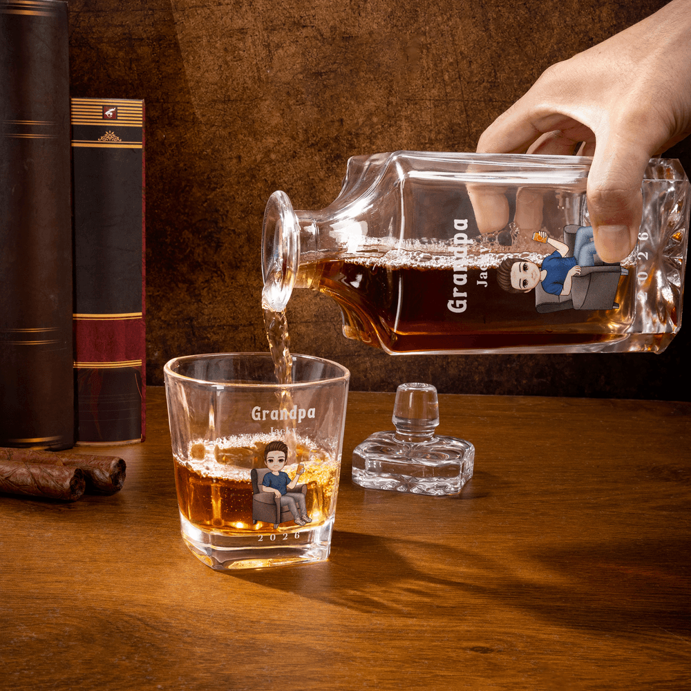 Personalized Cartoon Character Whiskey Decanter with Name Retirement Birthday Gift for Men Whiskey Lovers