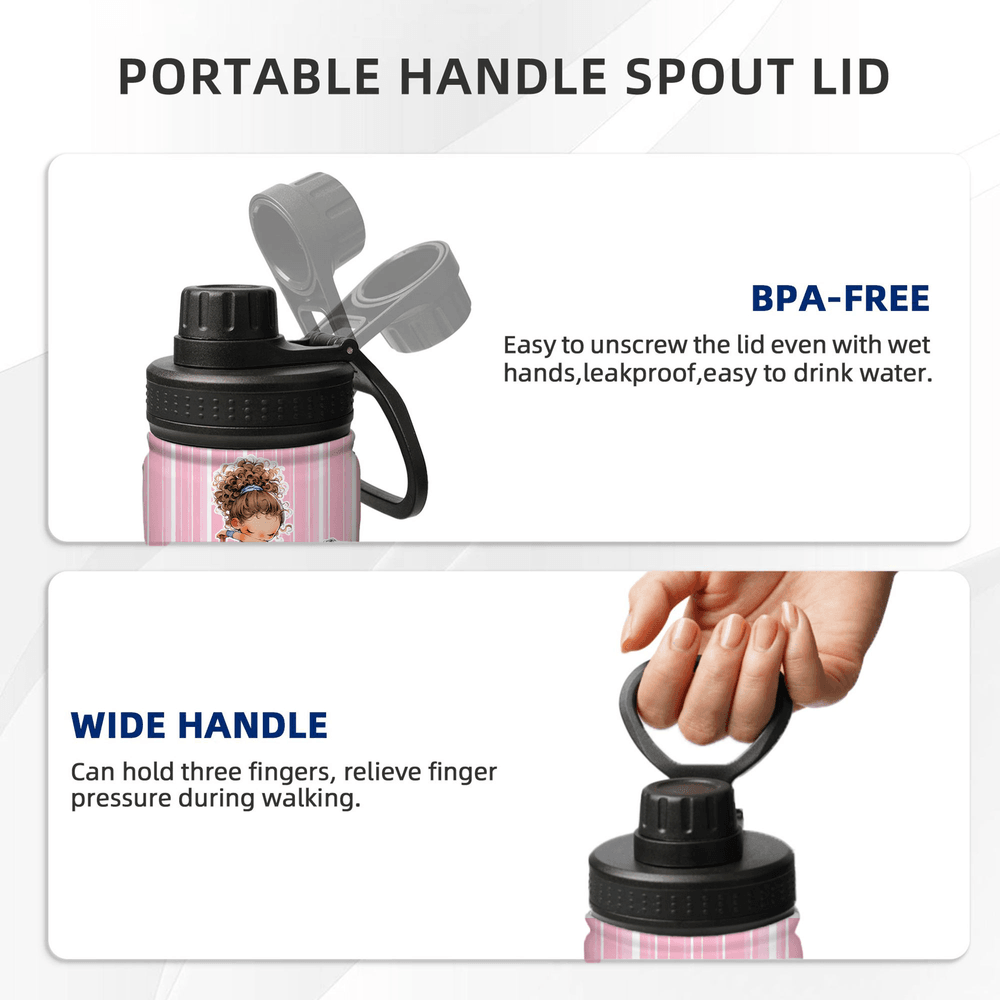 Feature: Vacuum insulated technology, Spill-proof lid, Portable and practical, Cartoon fitness girl