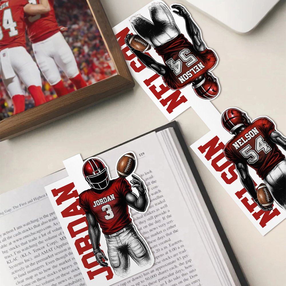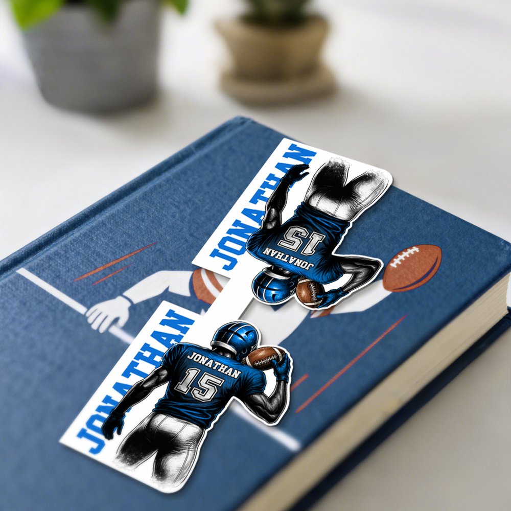 Centered on the cartoon football character, this design features customizable names and numbers, blending sporting passion with personalized design. Simple yet eye-catching, it adds a fun and ritualistic touch to reading.