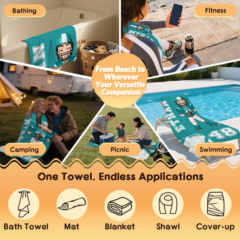| Feature: | Super Absorbent, Fast Drying, Sand Free, Durable and Soft, Oversized, Lightweight and Portable, Football Design |