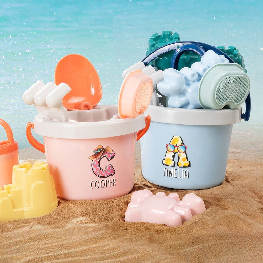 This beach toy set adopts a bright pink and blue color scheme; the bucket body is customized with the child's name and initials; the exclusive name design not only enhances the recognition to prevent loss but also lets the child proudly display the tool pail on the beach to stimulate creativity and a sense of belonging.