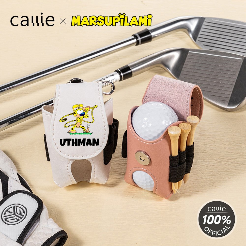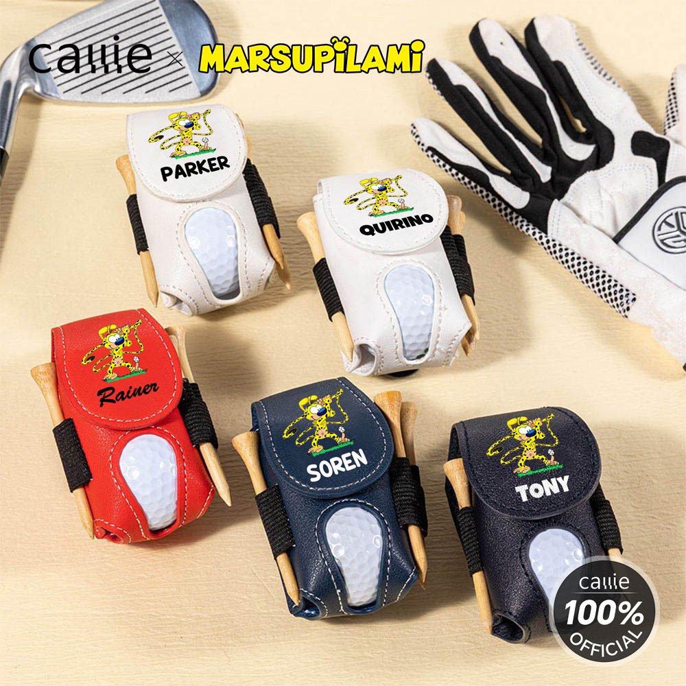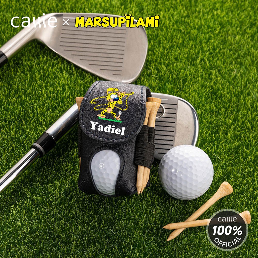 Personalized Cartoon Marsupilami PU Leather Golf Ball & Tee Holder Pouch with Name Birthday Gift for Golf Lovers | Callie × Marsupilami®