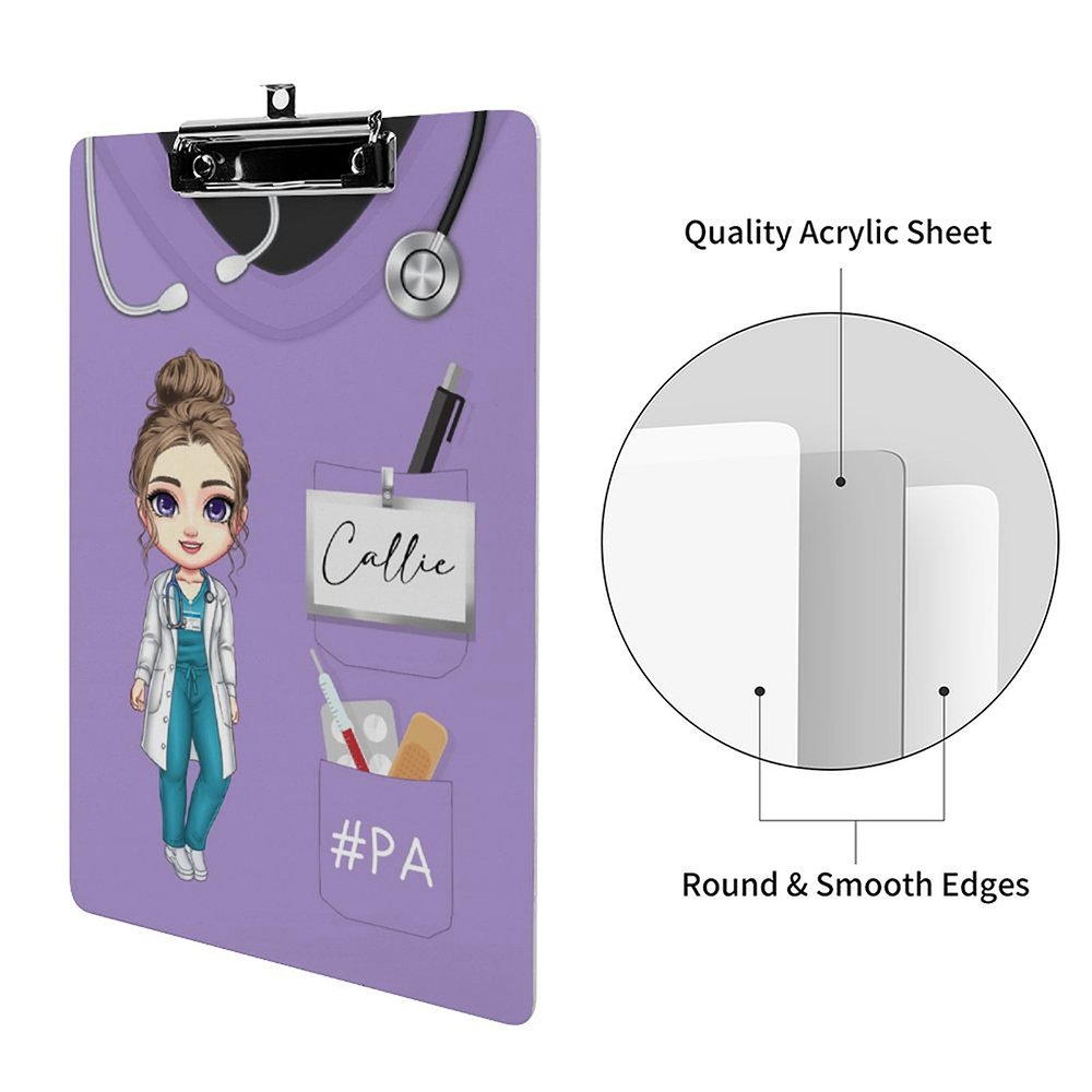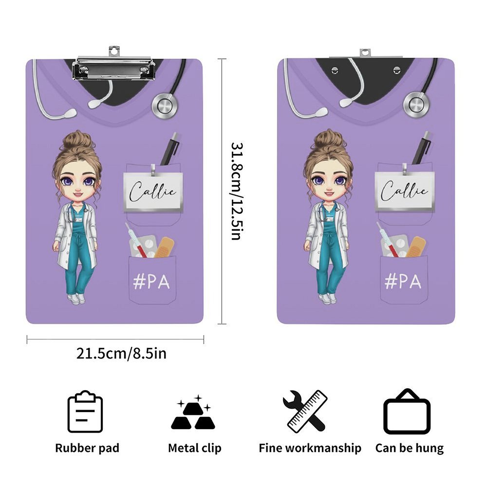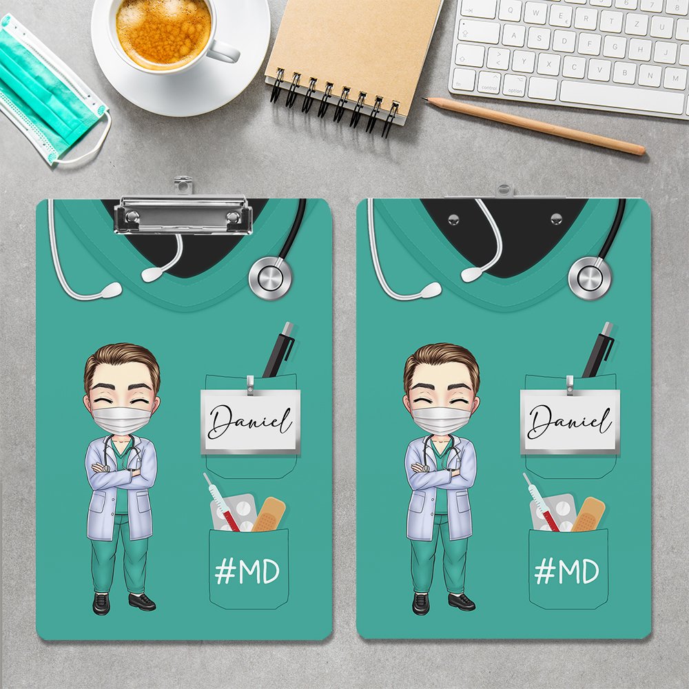 This clipboard features a cartoon medical staff character as its core design element. You can customize the character's gender, age, and appearance, as well as your title and name. This design not only reflects the professional qualities of medical staff but also creates a professional yet warm atmosphere.